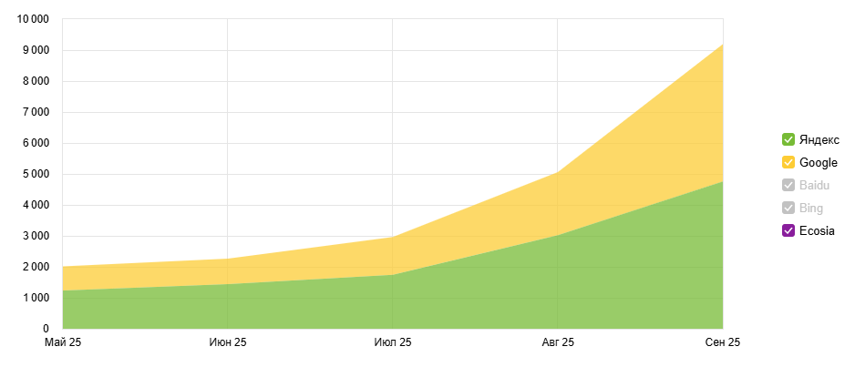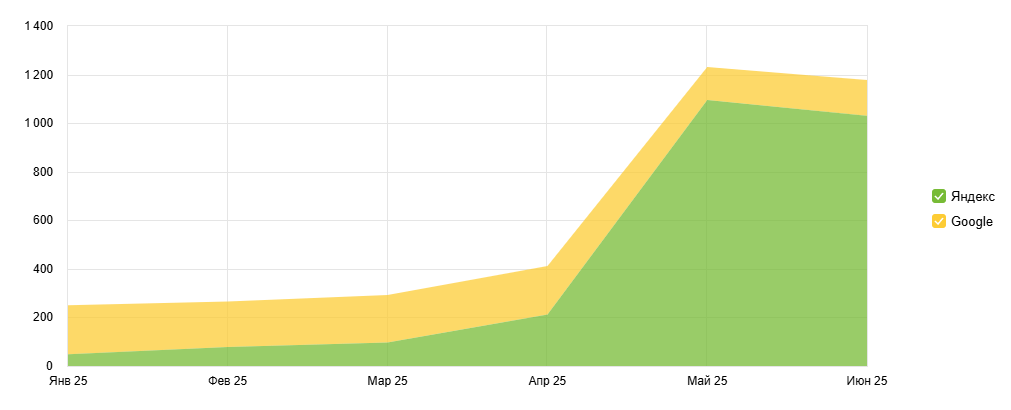 Первые попытки были ещё в 2023 году, результаты получились неоднозначные, и мы поставили проект на паузу. В 2024 году у нас сменился Head of SEO, и мы вернули перспективное направление в разработку. На сегодняшний день успешно применяем технологию для самых разных сфер бизнеса: