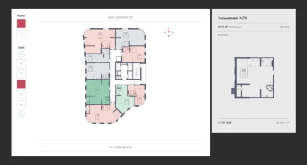 Это наша особая гордость. Мы уже внедряли интерактивный подборщик квартир на наши другие сайты для ЖК, но подборщик на сайте Бриннера мы улучшили кратно, сделав его более логичным, цепляющим и удобным для пользователей с любым уровнем владения компьютером. Изучение этажей и планировок квартир превратилось в увлекательную игру, которая поможет вам примерить на себя ту жизнь, о которой мечтаете.
