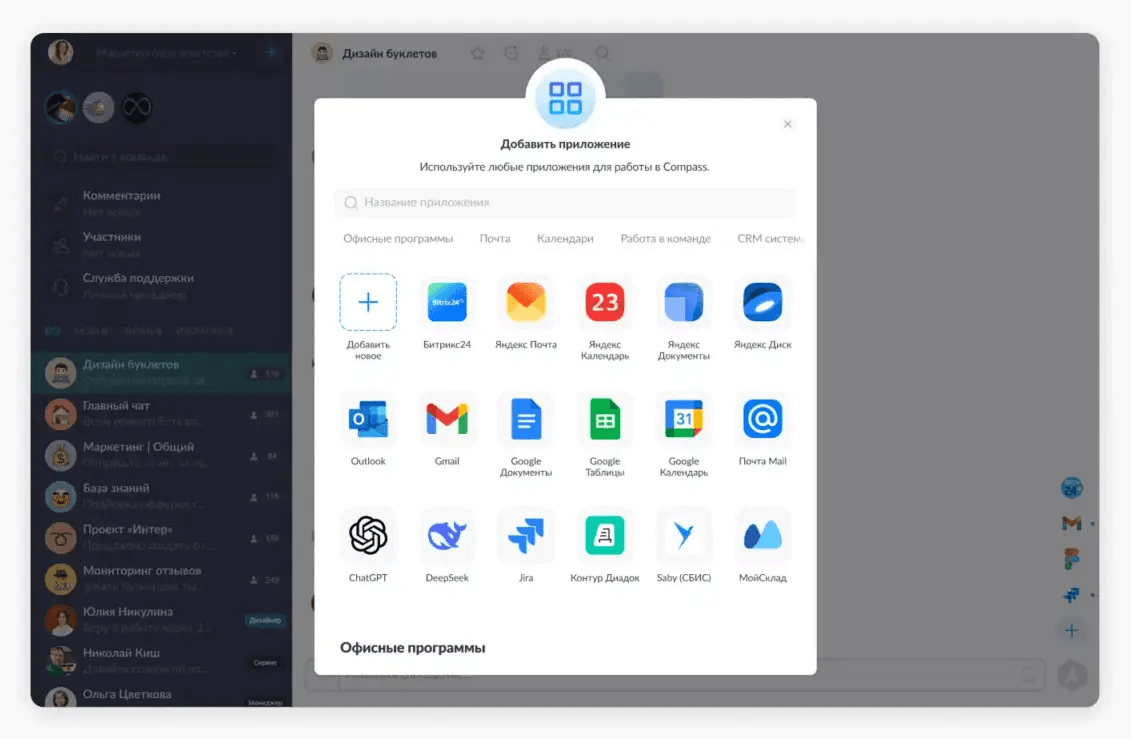 Вы же наверняка видели Mini App в Telegram? Ну вот это их аналог, только для бизнеса. Подключить можно не только те приложения, которые есть в каталоге Compass (а там их на сегодняшний день уже более 90 штук), а вообще любой сервис. Это ли не крутотень?