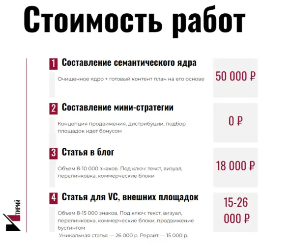В своих КП мы всегда объясняем, что входит в стоимость услуги, чтобы клиент понимал, за что платит: