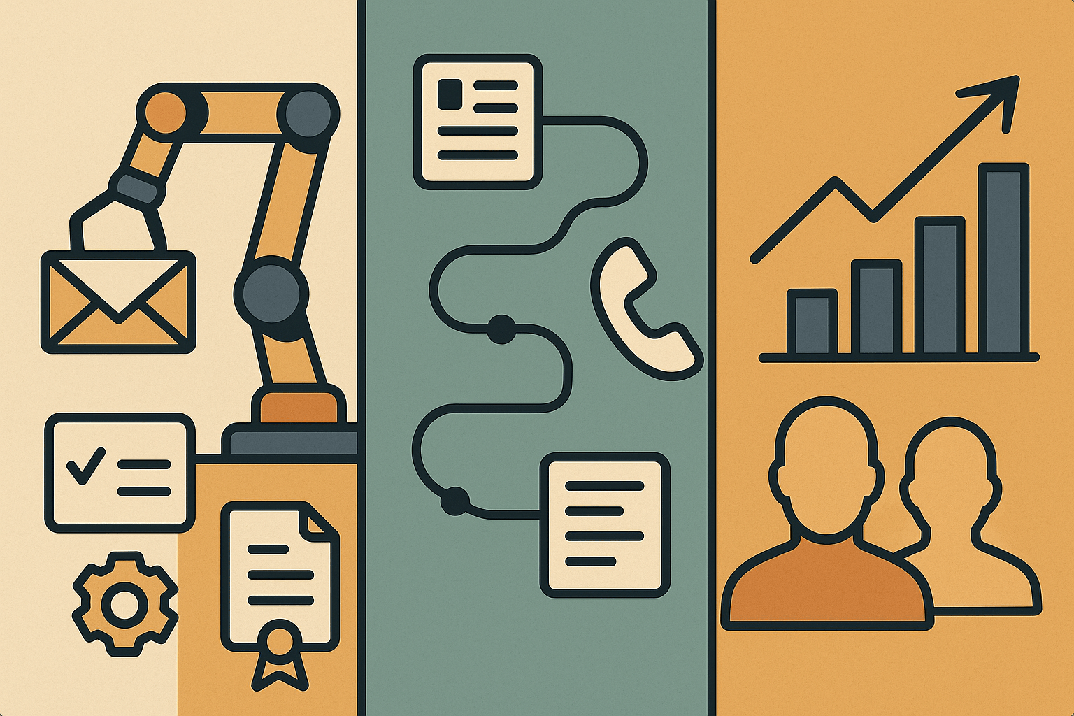 Автоматизация в CRM работает на пользу тогда, когда в основе лежат устойчивые, повторяющиеся процессы. Ниже — три типовые ситуации, в которых автоматизация не просто желательна, а даёт реальный эффект: