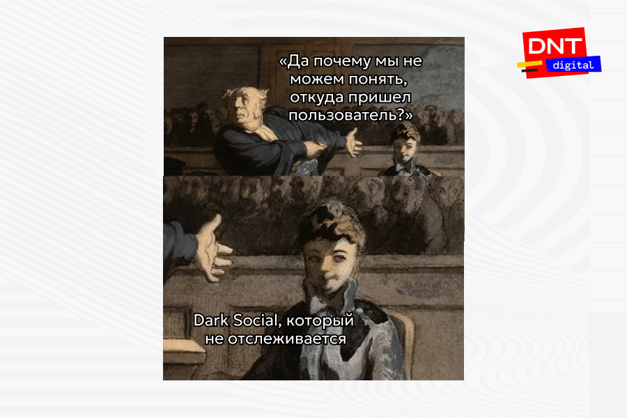 Под Dark Social (перевод —«тёмные социальные каналы») понимают любой трафик, который не отслеживается стандартными веб-аналитическими сервисами. Проще говоря, когда человек делится ссылкой на статью, продукт или услугу через личное сообщение в мессенджере (например, WhatsApp или Telegram) — такая активность часто не отображается в стандартных отчётах Метрики. Источник трафика видится как «direct» или «none», и крайне сложно понять, откуда пришёл пользователь.