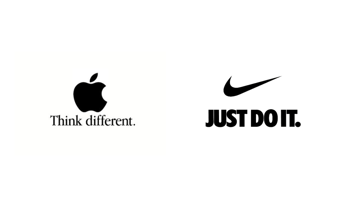 Например, популярный слоган Apple «Think different» («Думай иначе») отражал концепцию, на которой бренд строился в тот период. Компания воплощала архетип Творца, нарушая привычные в своей сфере правила, и предлагая пользователям новый подход к самовыражению и творчеству. Эту мысль отражали многочисленные рекламные материалы, презентации, политика и продукты компании. Аналогичным образом философию бренда раскрывает, например, слоган Nike «Just do It» («Просто сделай это»).