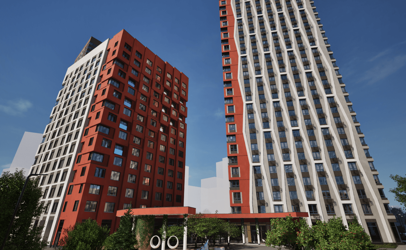 На помощь приходят рендеры ЖК. Они позволяют увидеть здание и инфраструктуру ещё до начала строительства.