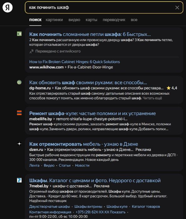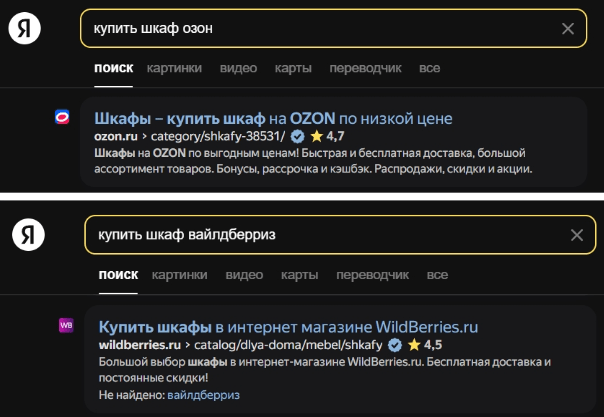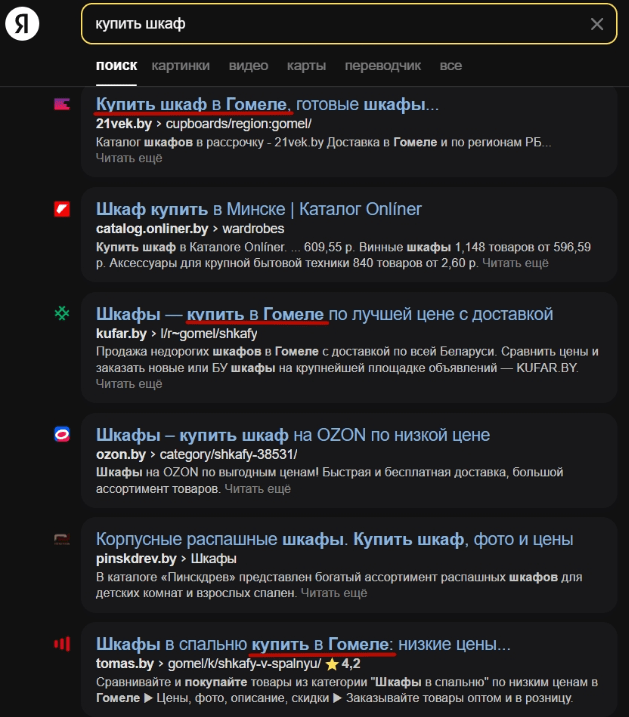 Некоторые запросы могут быть неоднозначны. Например, "кровати Минск" может означать интерес к производителям из города Минска или желание купить товары в данном регионе. Они требуют более внимательной проверки. В этом случае обратите внимание на заголовки и выделения в описаниях.