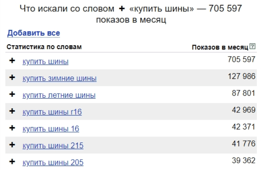 Затем необходимо выяснить, какие конкретные запросы вводят в поисковых системах. Один из самых мощных инструментов для того, чтобы расширить ядро – парсинг Яндекс.Вордстат – сервис, с помощью которого можно подобрать и проанализировать ключи. Поочередно введите каждый из базовых запросов. Из полученного списка выберите все подходящие варианты для использования на сайте.