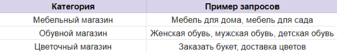 Первый и самый важный этап. Эти запросы в общих чертах описывают деятельность компании. На данный момент базовый список не разделен по интентам, частотности и иным параметрам. Например, для интернет-магазина это может быть перечисление всех категорий товаров, которыми он торгует. Просто перечислите все, что входит в ассортимент, в том порядке, в котором приходит в голову.