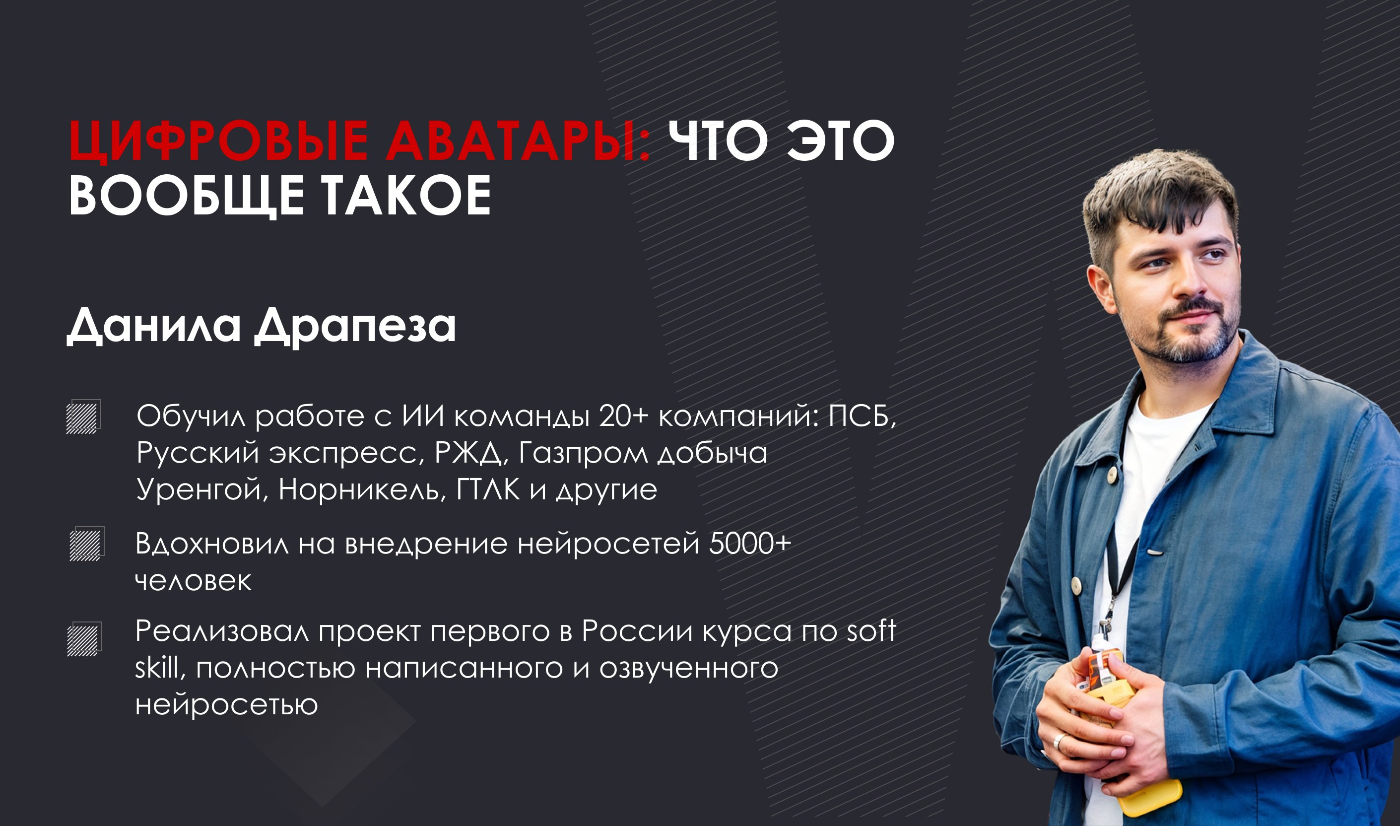 Онлайн-школа для travel-специалистов. Для их курса мы оцифровали реального человека из компании: сделали цифрового аватара, который рассказывал про нейросети в travel-индустрии.