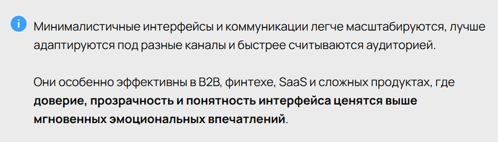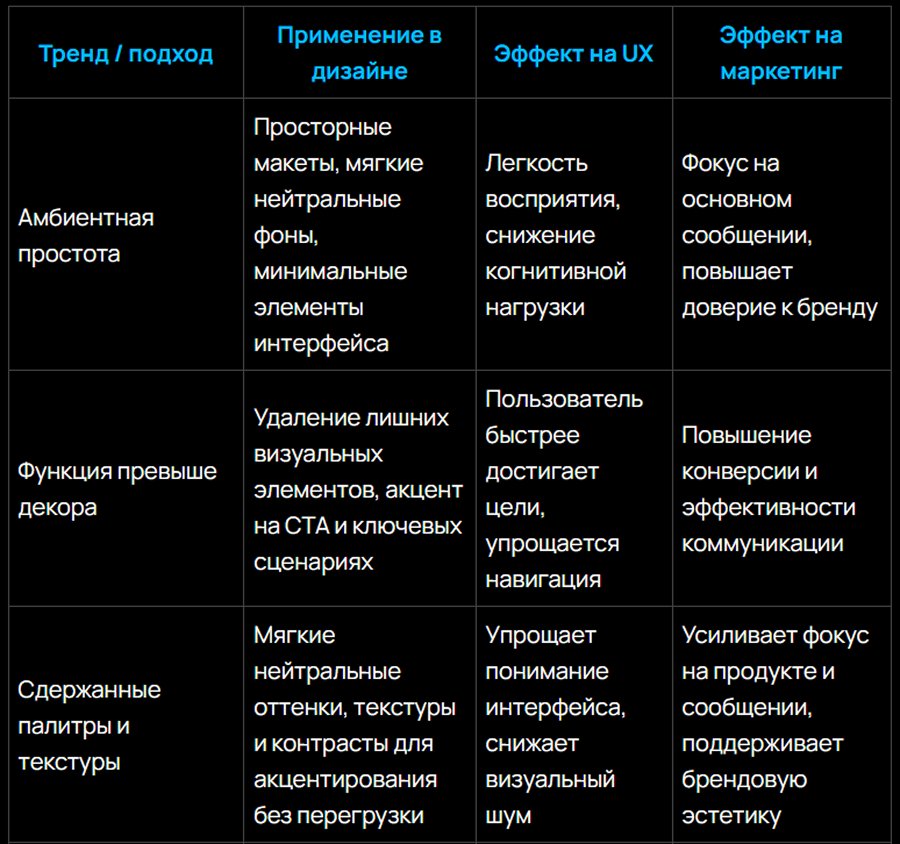 Бренды, которые осознанно сокращают визуальный и функциональный шум, демонстрируют зрелость и уверенность: им не нужно кричать, чтобы быть услышанными.