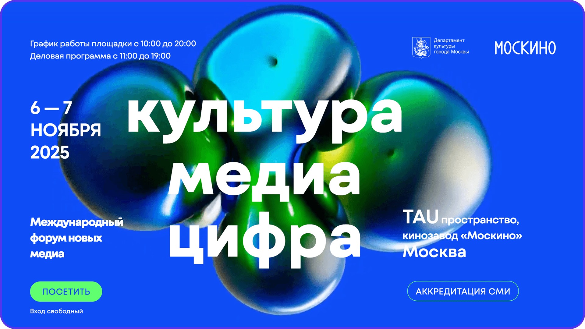 Форум объединяет лидеров медиарынка и культурных индустрий стран СНГ. На территории кинозавода “Москино” встретятся представители различных креативных сфер: кино, театра, музыки и литературы. Центральная тема мероприятия – развитие медиарынка и поиск новых форм сотрудничества.