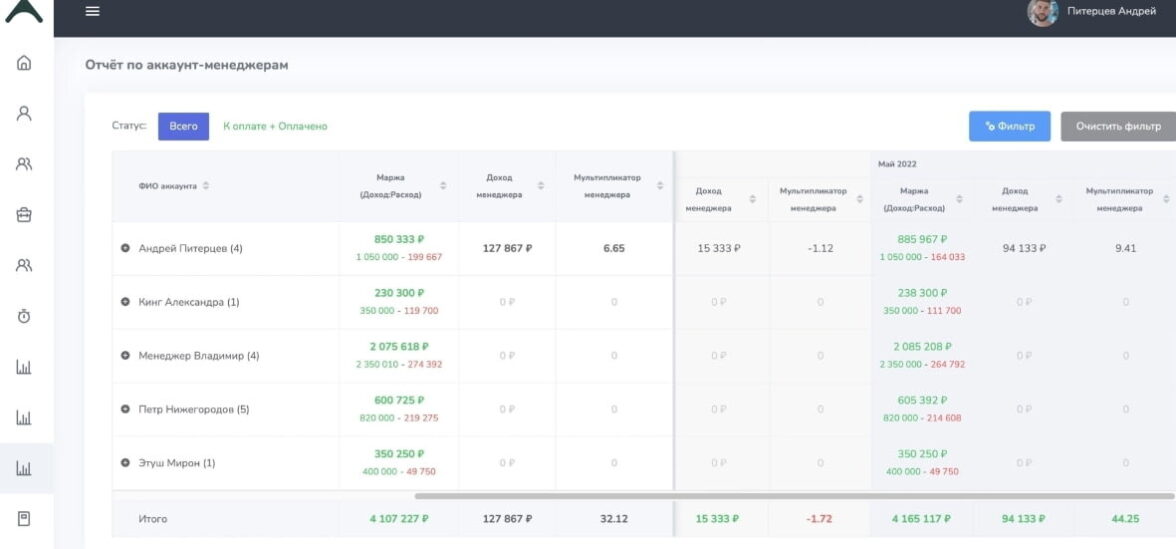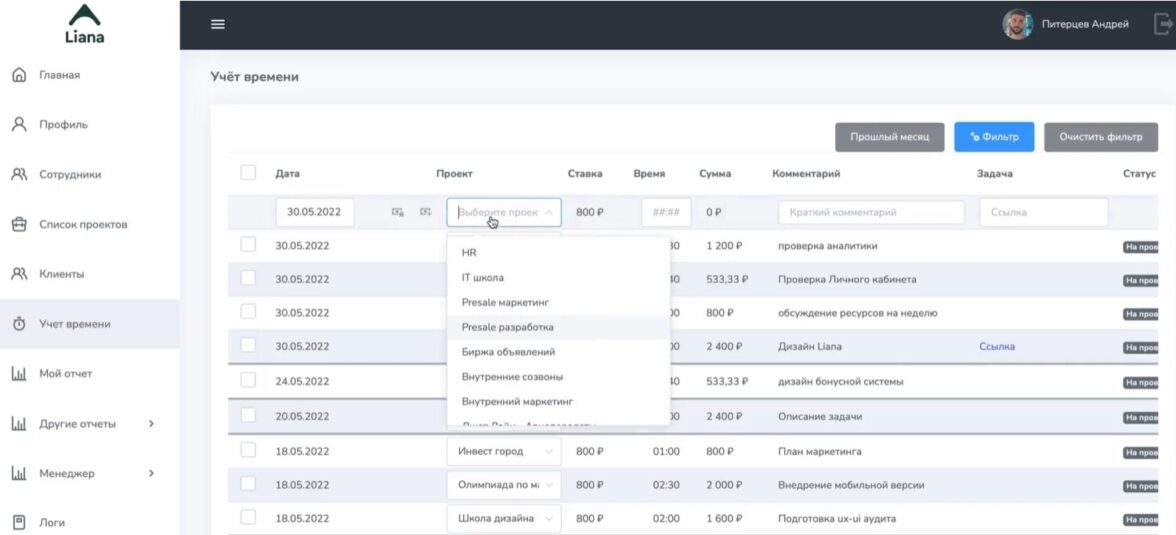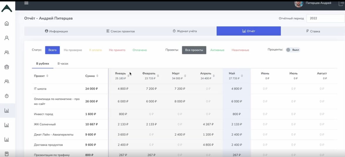 Также было важно все предусмотреть в плане форм оплаты труда, поскольку мы планировали рассчитывать заработок для каждого сотрудника. Если какой-то из вариантов мы бы не предусмотрели, пришлось бы как-то выкручиваться и пересчитывать, чтобы внести правильно. Форм оплаты может быть много, здесь и фиксированная оплата за задачу, которая не зависит от потраченного времени, и напротив, оплата за рабочий час, и месячный оклад, который нужно отобразить в пересчете на часы при внесении данных, и так далее.