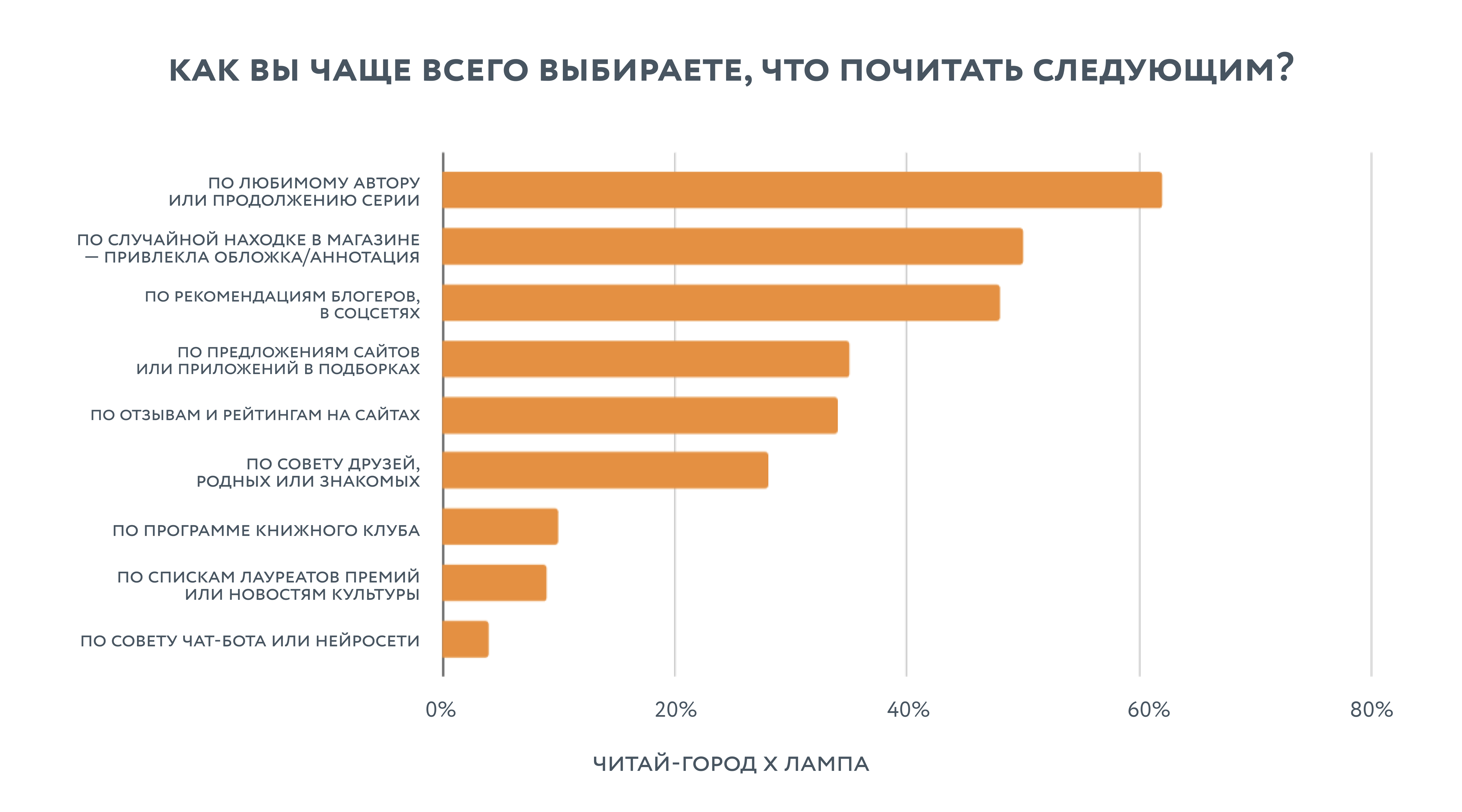 При этом привычные способы никуда не делись. Две трети читателей по-прежнему выбирают книги, ориентируясь на любимого автора, или по продолжению серии. Половина — доверяют случайности: красивая обложка или цепляющая аннотация в магазине перебивают любые планы.