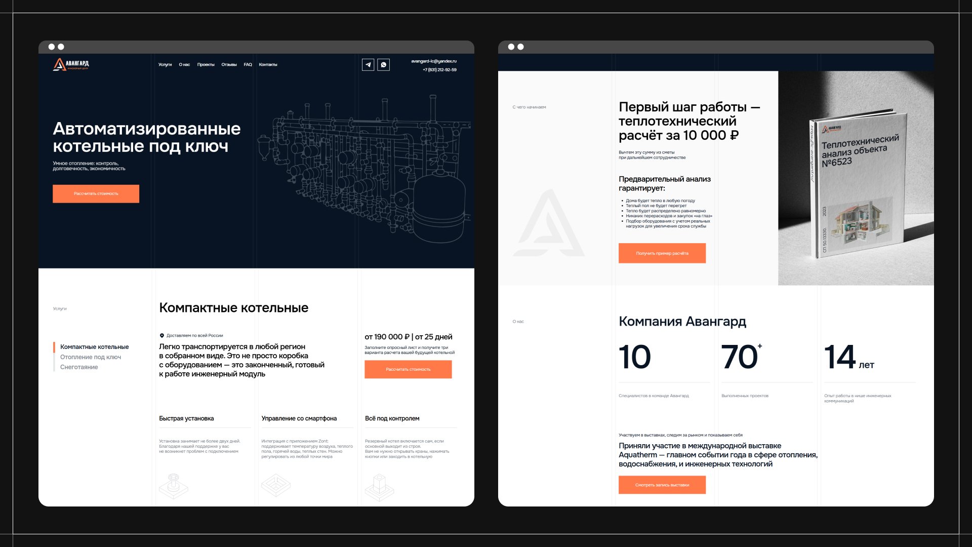 Так было с проектом «Авангард» — автоматизированных котельных «под ключ». Сайт заказчика устарел и проседал в конверсии.