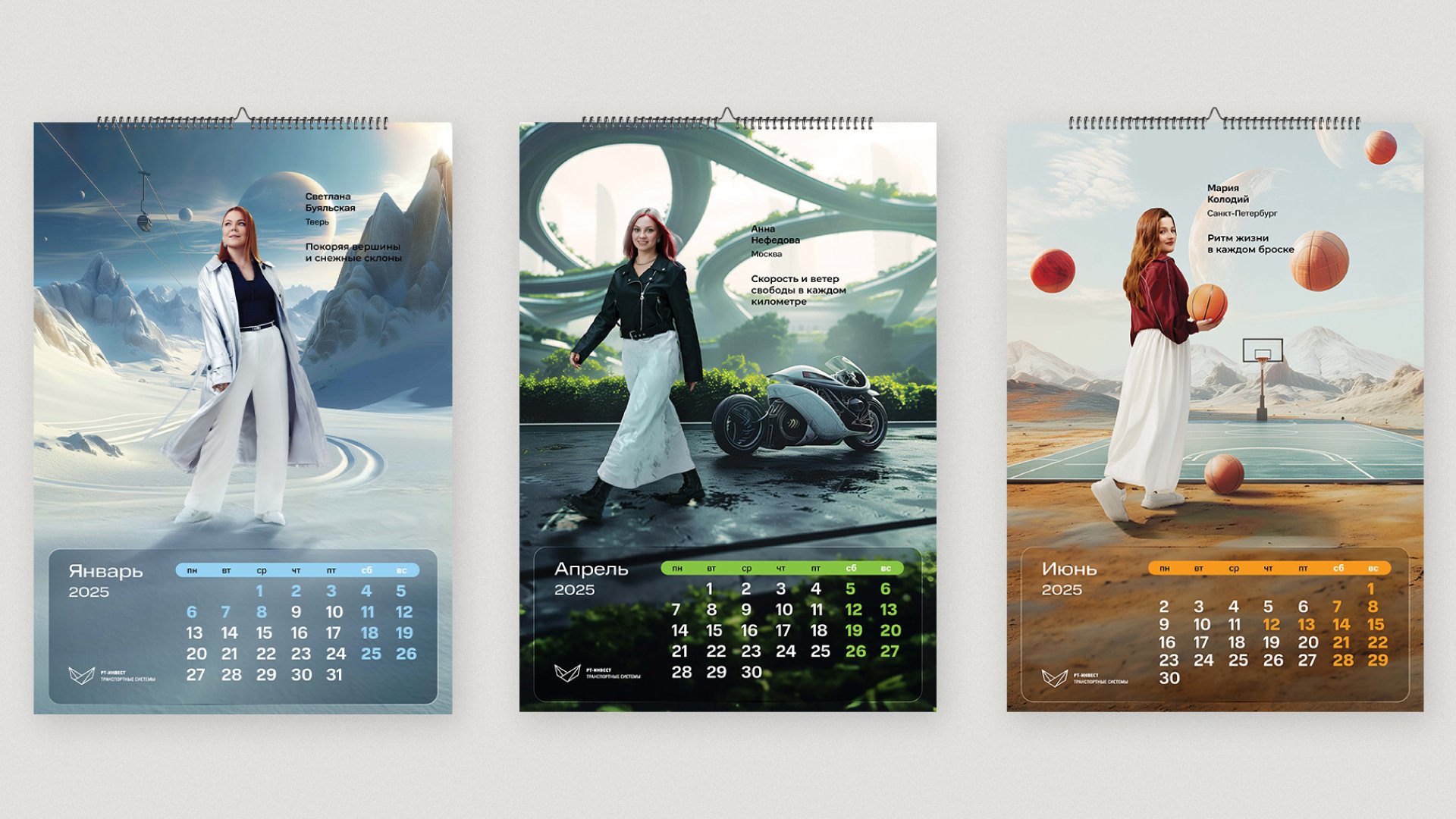 К подобному можем отнести и наш кейс комплексного коммуникационного проекта для компании «РТ-Инвест Транспортные системы», в визуальных рамках которого мы помещали сотрудниц компании в фантазийные миры их увлечений, созданные с участием нейрокреаторов.