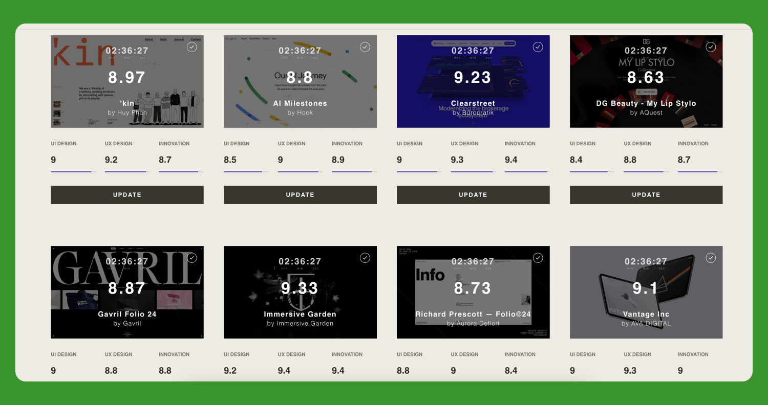 CSSDA — это один из топовых рейтингов для дизайнеров и студий со всей планеты, чтобы показать свои навыки. Награды, полученные от CSSSDA имеют вес в дизайн-сообществе.