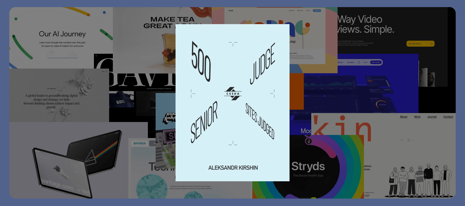 В 2022 году я стал участником международной команды жюри на дизайн-премии CSS Design Awards. В 2024 году мне присвоили статус Senior Judge.
