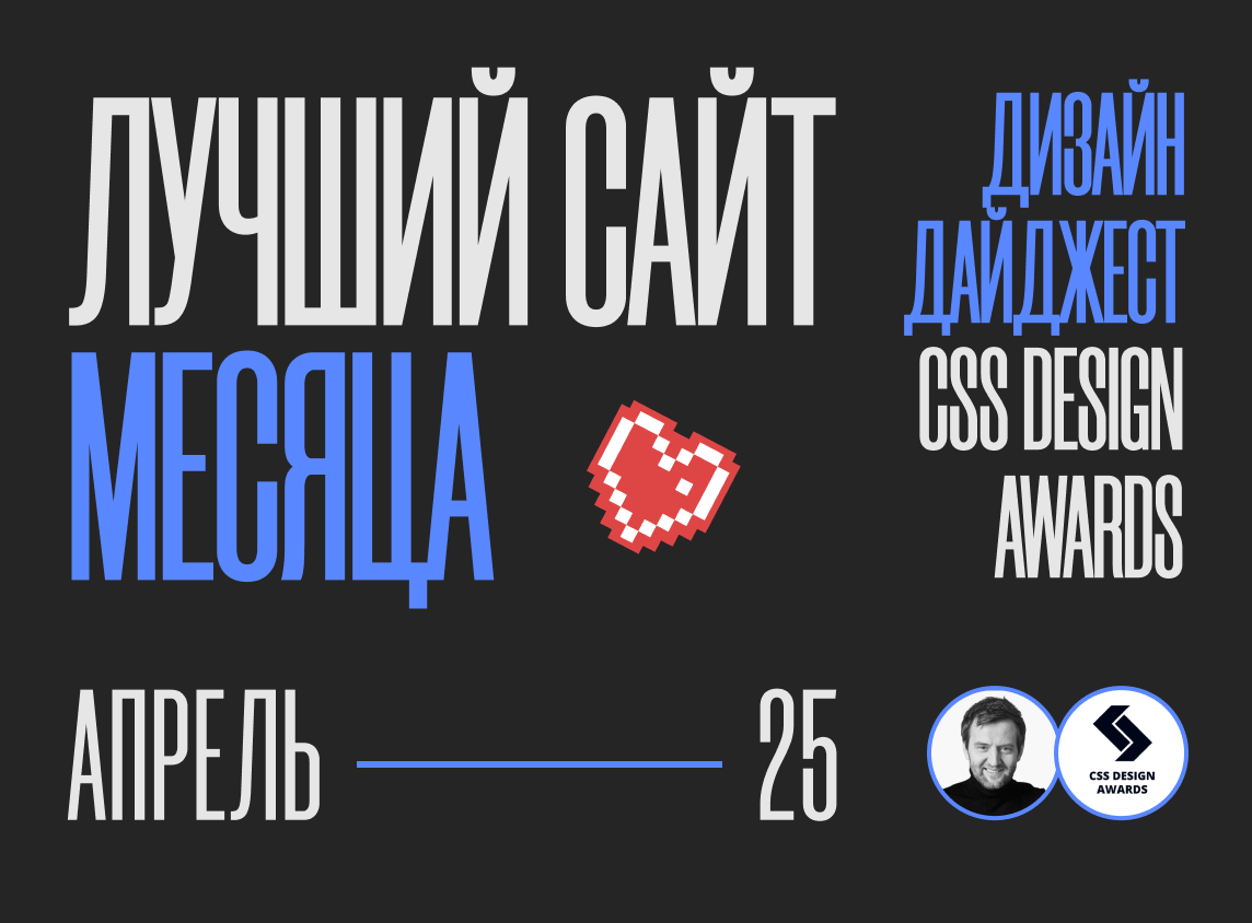 Чао-какао, всем творческим и продуктовым! В начале мая появился шорт-лист номинантов на награду "Сайт Месяца. Апрель 2025". По традиции, приготовил для вас дизайн-дайджест по премии CSS Design Awards.