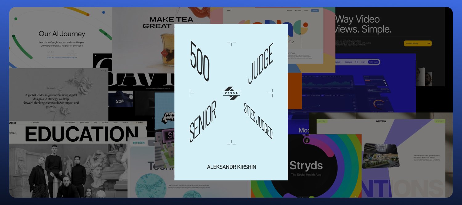 Начиная с 2022-го, я участник дизайн-жюри CSS Design Awards. Подробности о премии и чем она крутая — можно найти здесь.