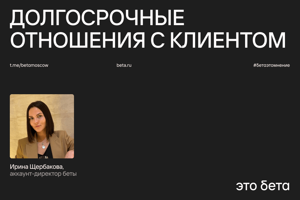 Привет, это бета. Легко нивелировать качество и уникальность продукта, если сервис оставляет желать лучшего. Чтобы сотрудничать с клиентом годами, важно выстраивать доверительные отношения. В статье подробно рассказали, как это делаем мы!