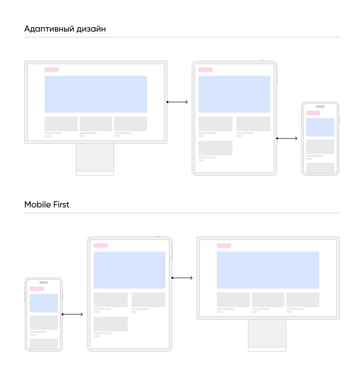 Оба метода направлены на то, чтобы обеспечить корректное отображение сайта на разных устройствах. Mobile First – это стратегия, когда меняются приоритеты: сначала создается мобильная версия, затем остальное. В этом случае нет ощущения неполноценности сайта.