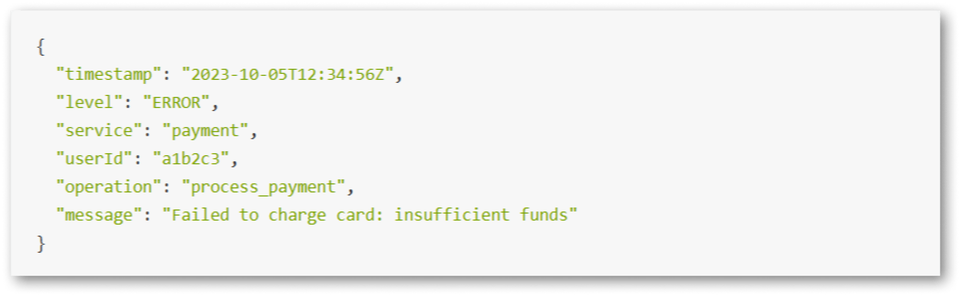 Для анализа пользовательского опыта недостаточно отслеживать только ошибки 5xx. Важно структурировать логи в JSON с контекстом позволяющим упростить поиск ошибки: