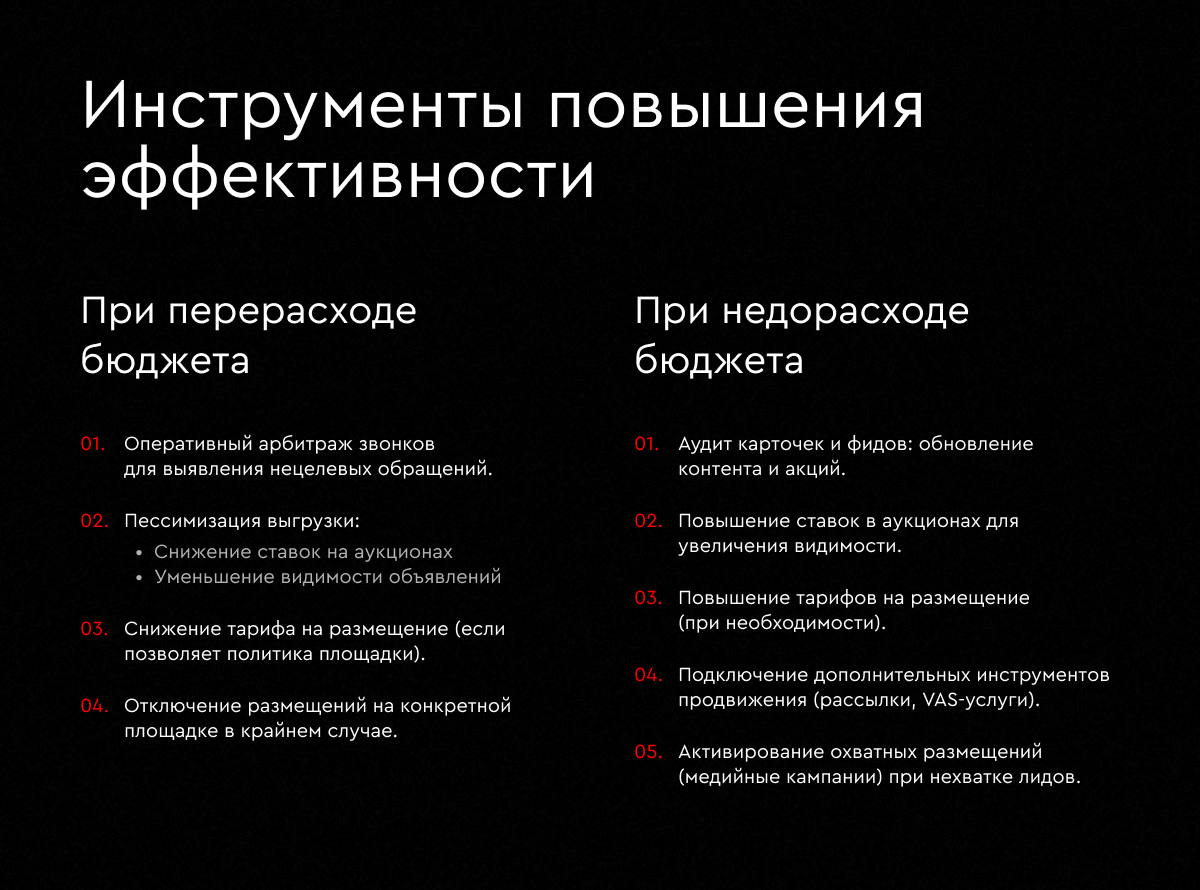 Такой комплекс мер позволяет быстро адаптировать стратегию под текущую ситуацию на проекте и удерживать эффективность рекламных кампаний даже при колебаниях спроса или изменениях правил площадок.