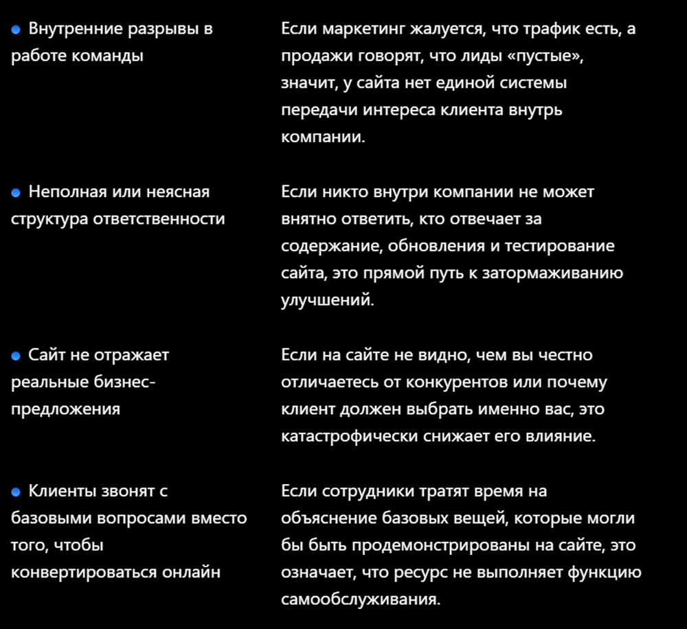 В этом материале мы предлагаем подойти к оценке сайта как к анализу бизнес-процессов. Вместо сухих цифр и отчётов обратите внимание на поведенческие и организационные сигналы. Они наглядно покажут, где теряется эффективность и что требует изменений.