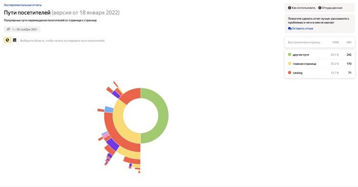 Пути, на которые приходится меньше 0,1% посетителей, в отчёте не отображаются.