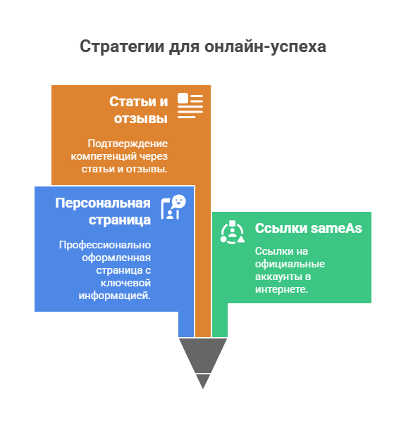 Личная страница с разметкой schema.org/Person связывает воедино все источники. Для Google и Яндекса это критически важный сигнал, без которого остальные усилия теряют вес.