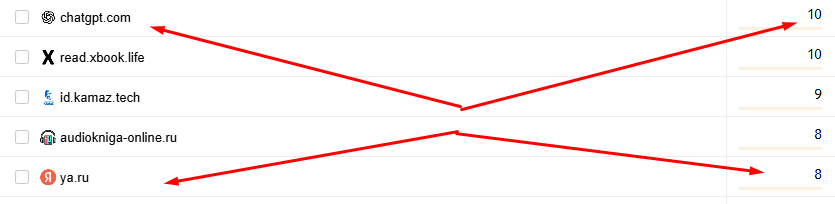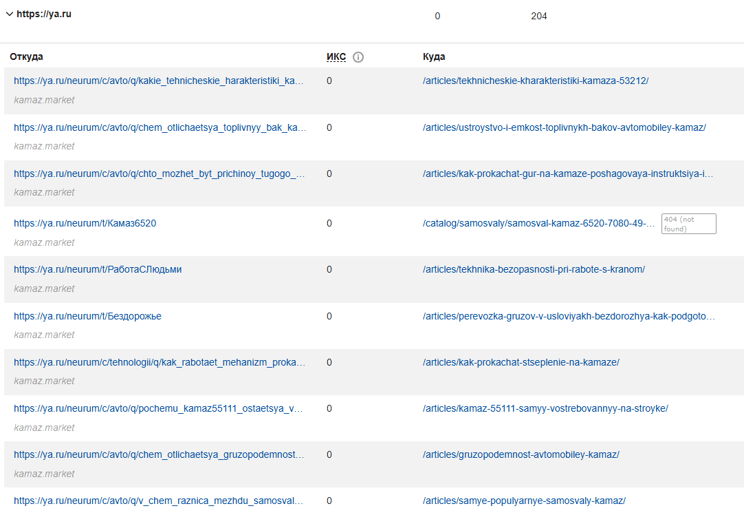 Через отчет по внешним ссылкам в Яндекс Вебмастере можно увидеть доноров, которые ссылаются на сайт. В том числе там отображаются нейроответы Алисы. Видно сам вопрос пользователя, сформированный ответ и страницу, на которую ведет ссылка.