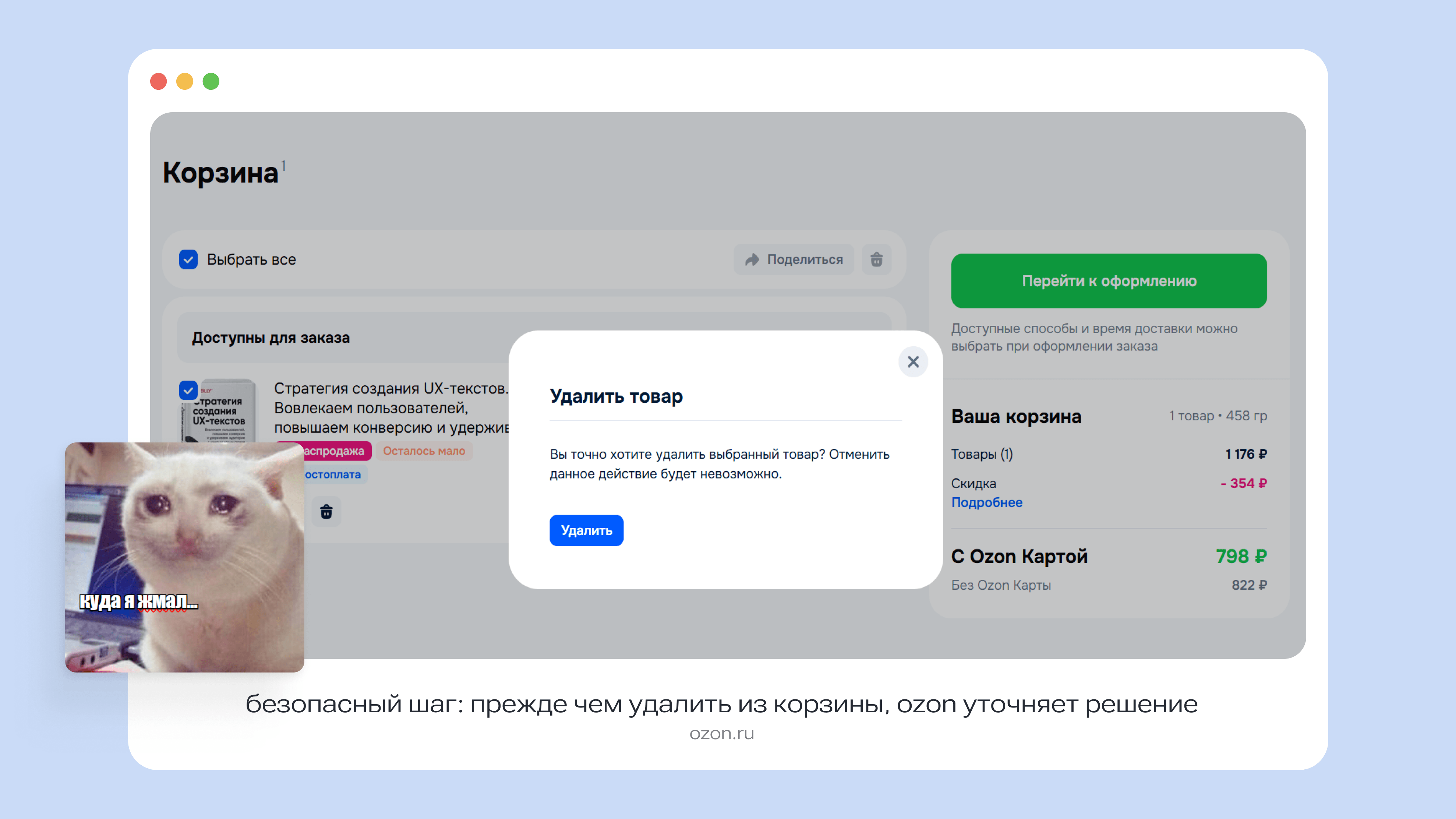 Или система позволяет удалить важные данные без подтверждения и не предлагает шаг назад. В итоге человек остается ни с чем. Начинать сначала долго, раздражает и демотивирует. В таком состоянии он чаще всего просто уходит, не завершив целевое действие, а значит, не оставляя заявку, не оформляя заказ, не оплатив.