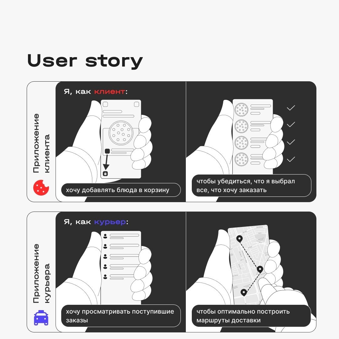 И это только два примера историй: в качестве сотрудника и с точки зрения клиента. По нашему опыту, на одно приложение разрабатывается не менее 12ти user story. Теперь мы знаем, какие задачи будет решать приложение. Осталось разобраться как их решать, с этим поможет customer journey map.