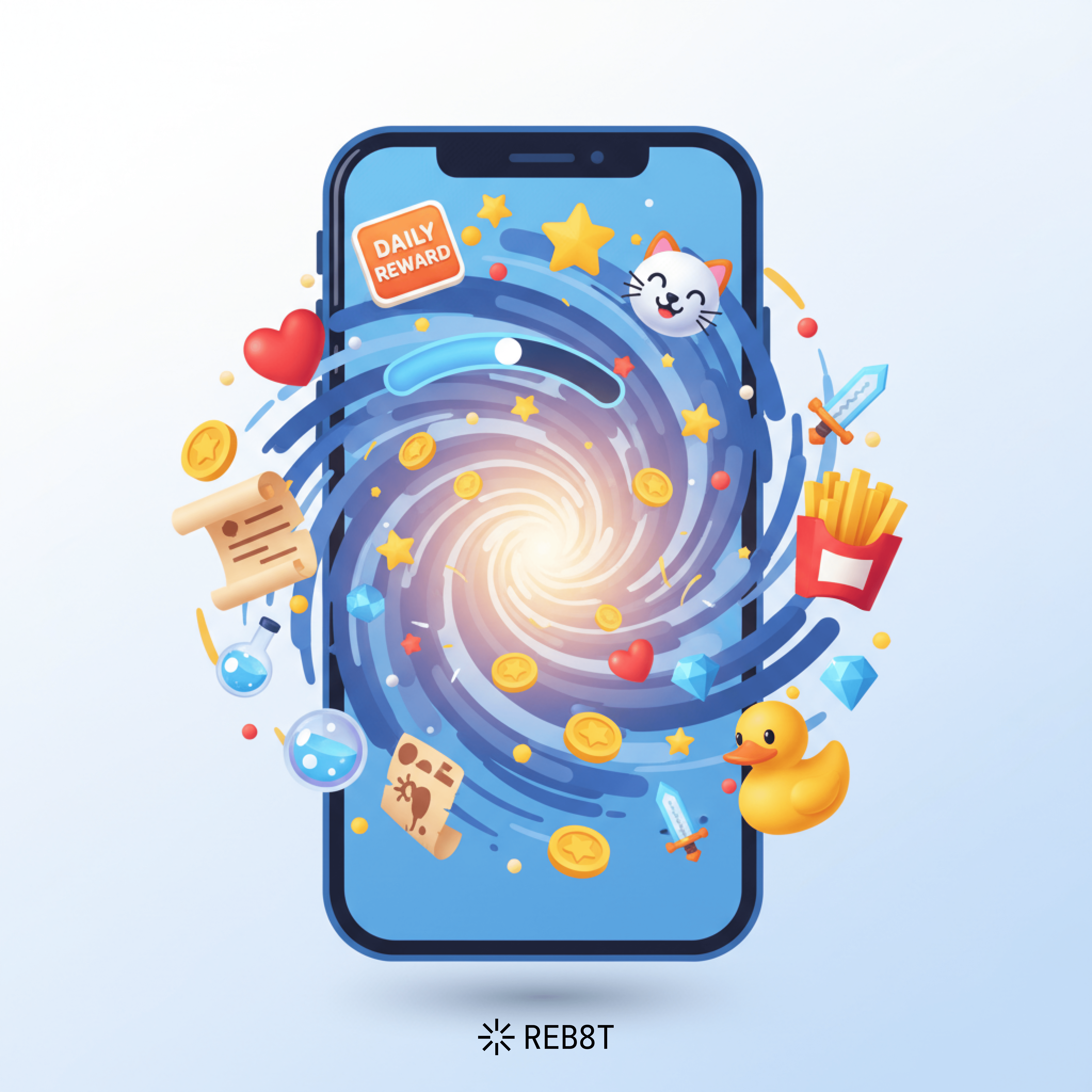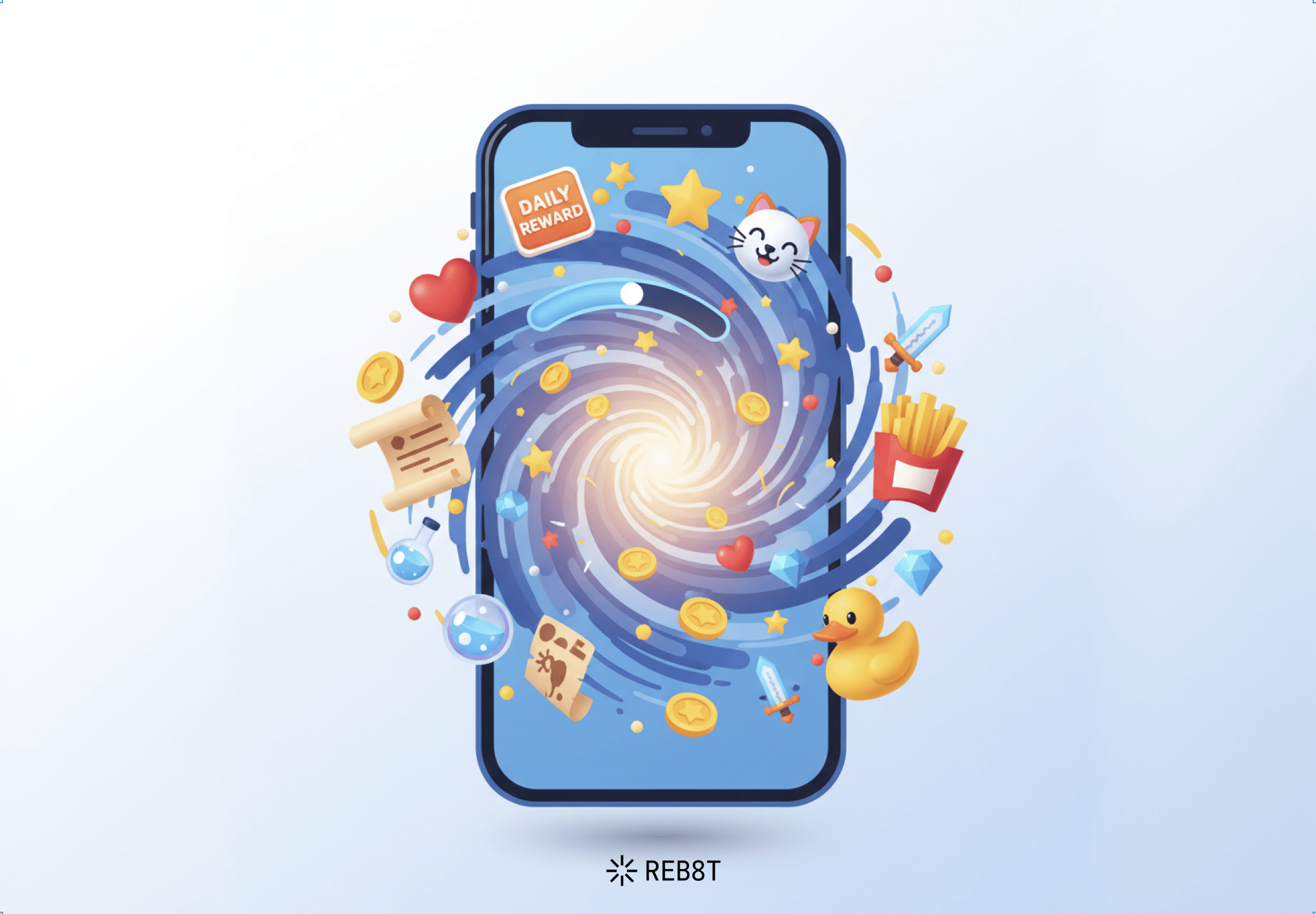 Бизнесу это даёт частоту входов, первые конверсии и внимание со стороны новых пользователей. Можно использовать петли в прогресс-баре, ежедневных подарках, счётчике дней (streak).