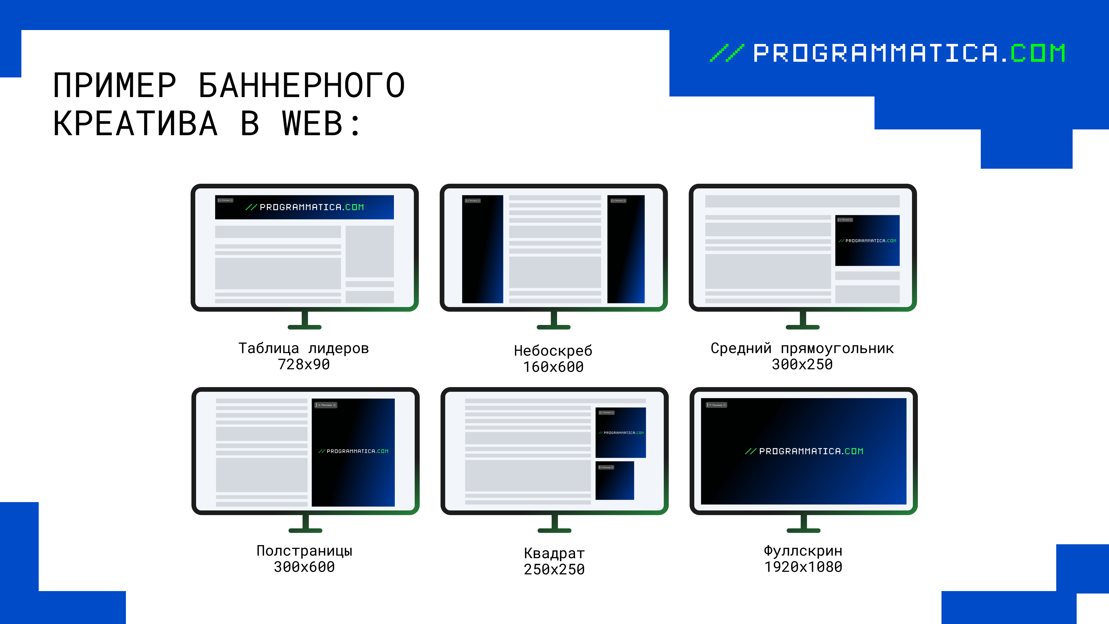 Программатик-реклама это технология автоматической покупки и продажи рекламных мест в режиме реального времени. В отличие от традиционного размещения рекламы, где всё происходит вручную, программатик использует специальные платформы (DSP — Demand-Side Platform, платформа для рекламодателей, и SSP — Supply-Side Platform, платформа для владельцев площадок), которые автоматически подбирают и показывают рекламу нужной аудитории. Правильно выбранный креатив влияет на вовлечённость аудитории, конверсию и возврат инвестиций.