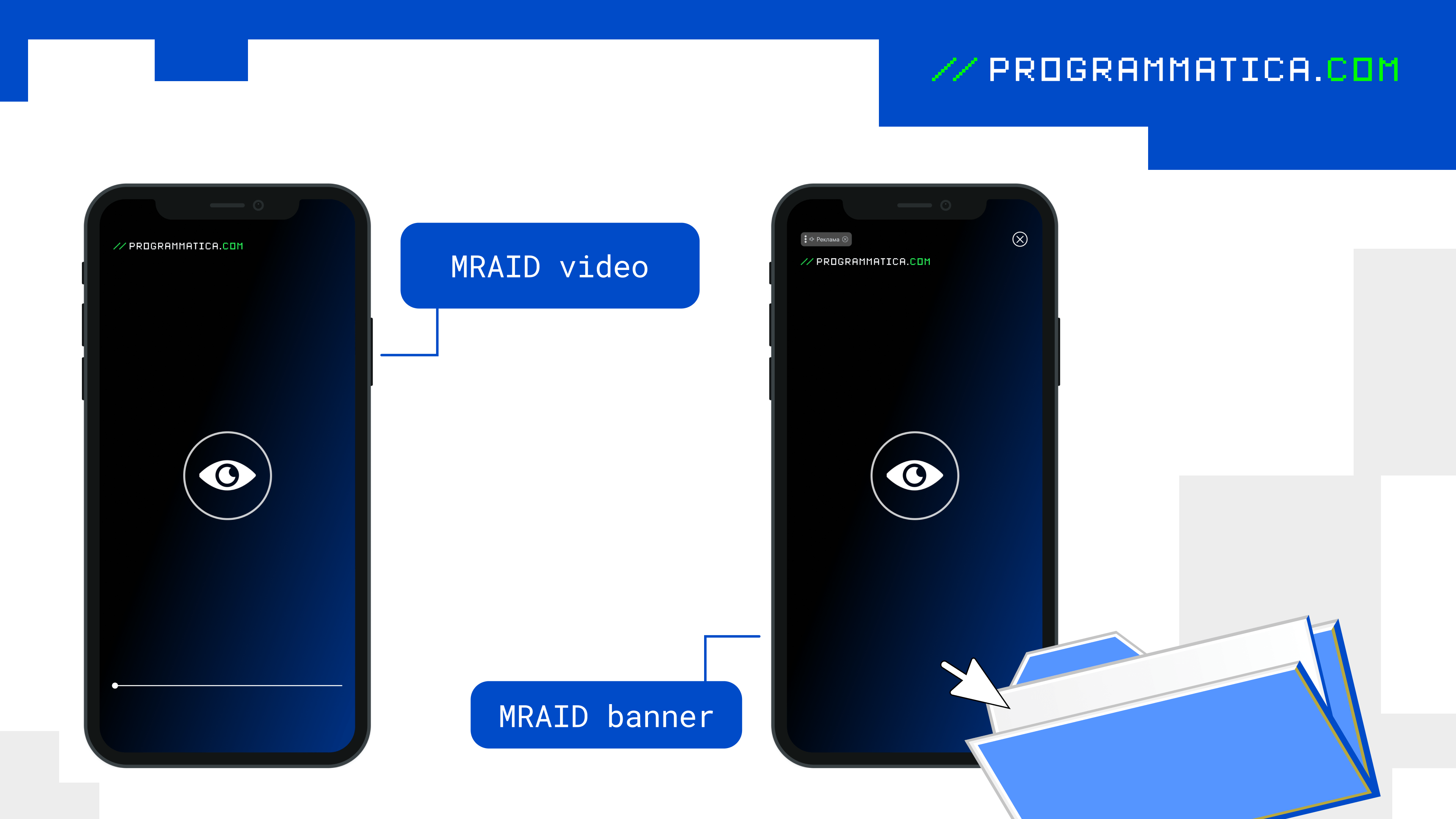 MRAID для мобильной рекламы это стандартизированный контейнер для in-app среды, который подгружает креатив со стороннего рекламного сервера трекера. Внутрь данного контейнера можно «положить» как баннерные креативы, так и видео.