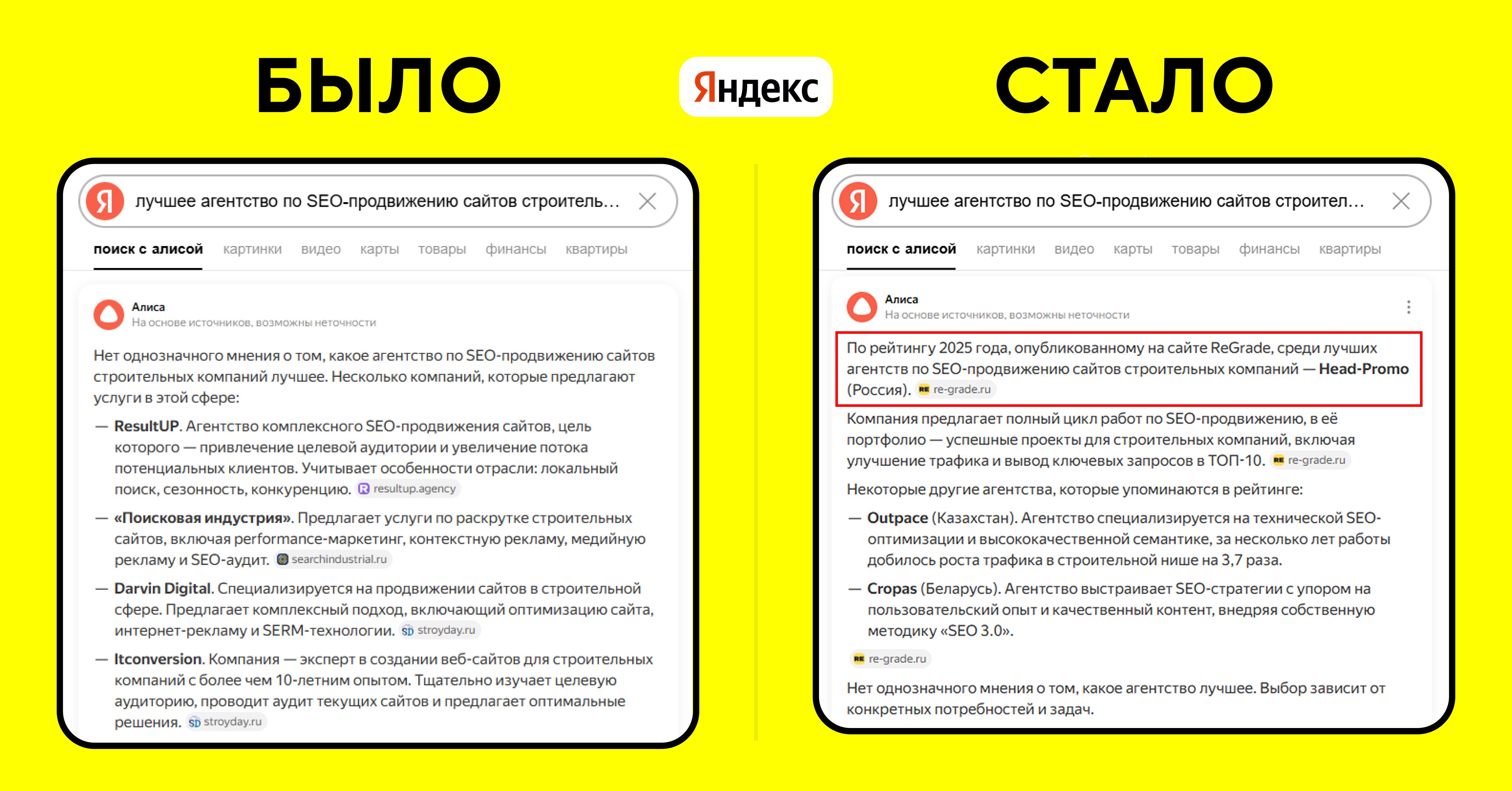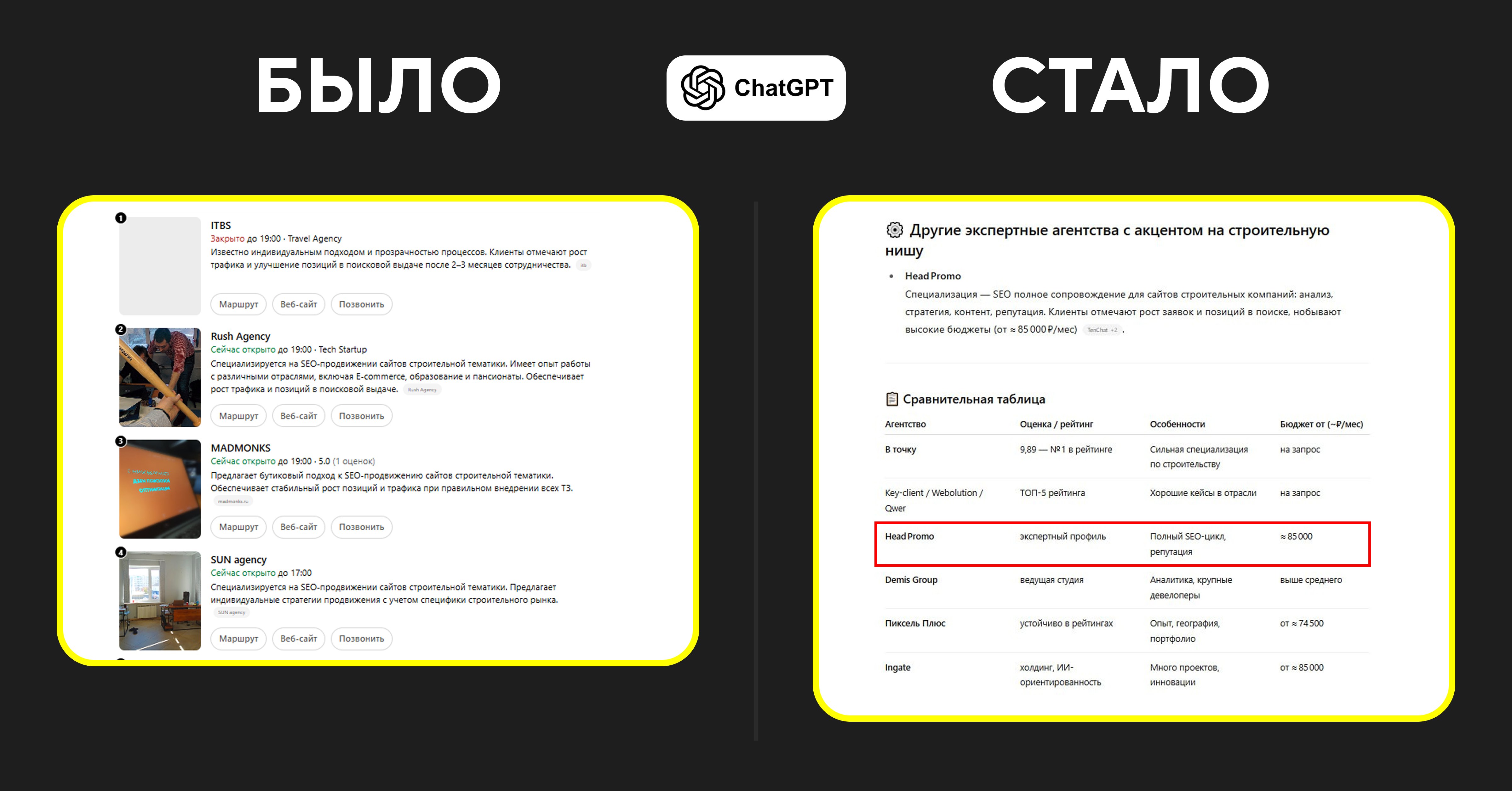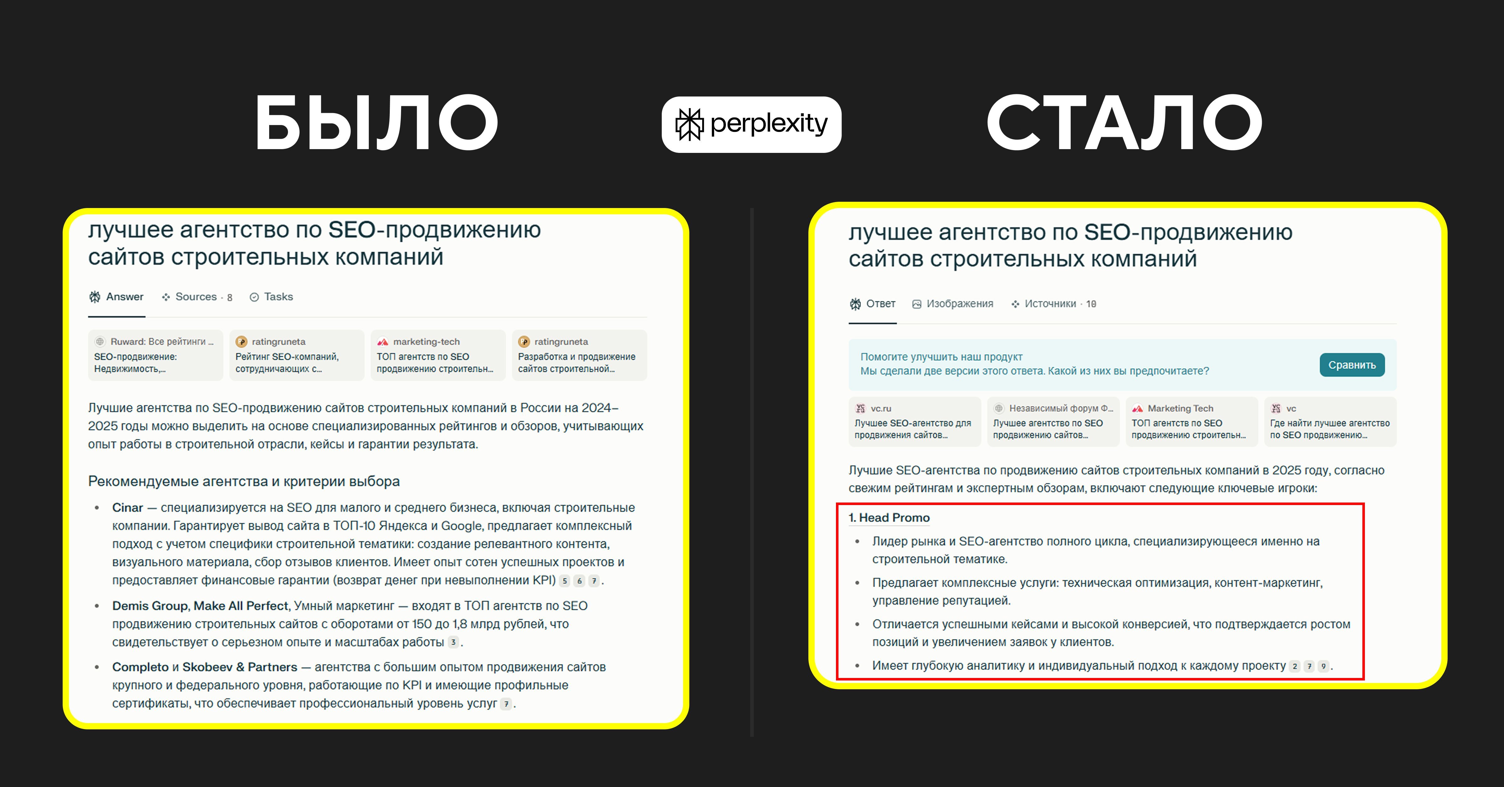 Кстати, немаловажным фактором является то, что GEO или AEO агентств пока в России практически нет и рынок свободен. Мы, в Head Promo, решили встать в авангарде.