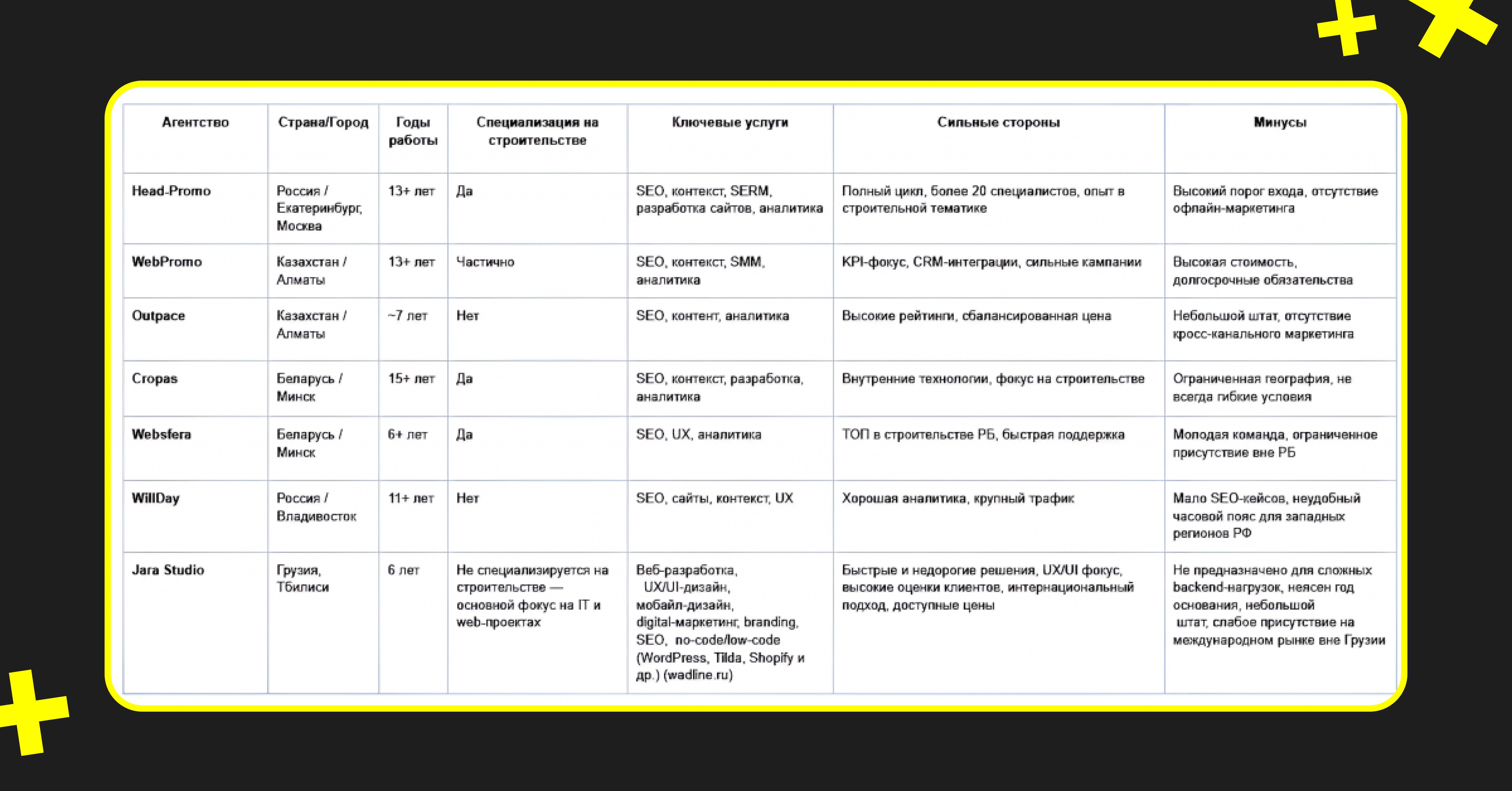 У нас, напомню, был запрос: “лучшее агентство по SEO-продвижению сайтов строительных компаний”