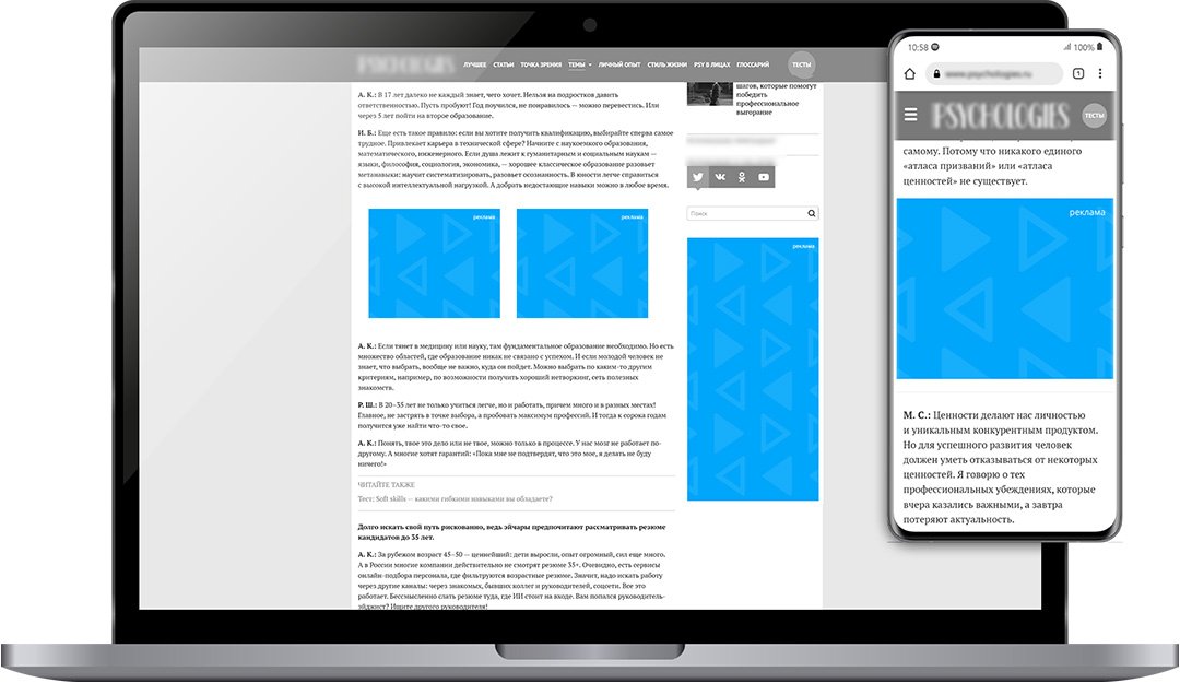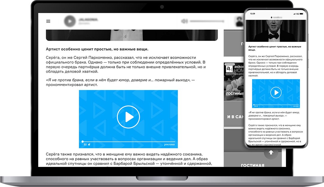 In-stream. Ролики встроены непосредственно в видеоконтент — до, во время или после просмотра. Формат демонстрирует высокий уровень вовлечённости и CPM, особенно при размещении через AD-серверы и programmatic-сети. Наиболее эффективен для сайтов с собственными видео: обзоры, интервью, трансляции.