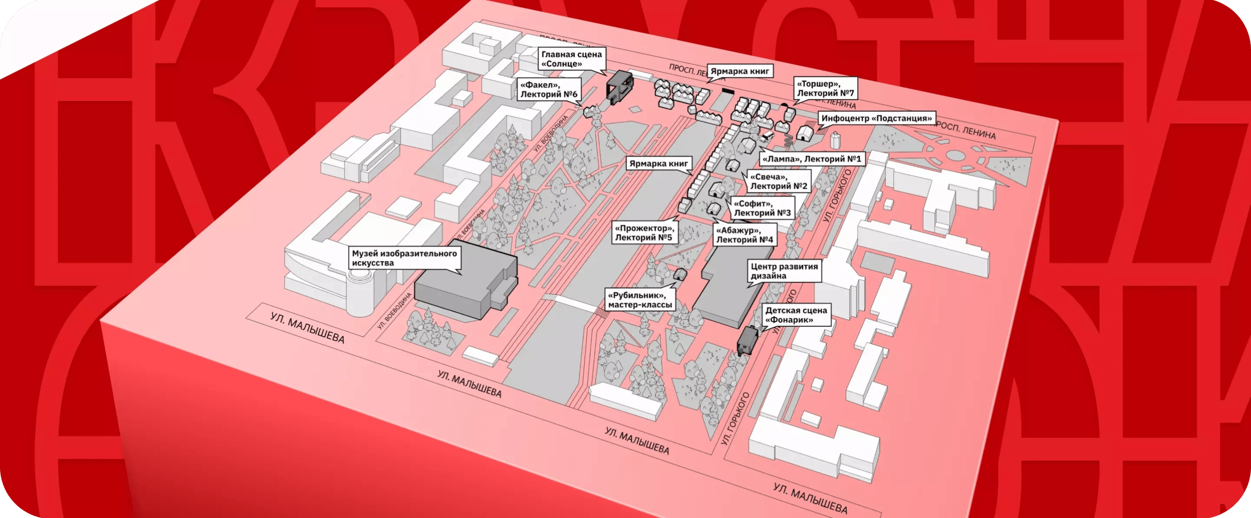 Мы начали с самой основы — структуры. Важно было не только отразить сложную программу, но и сделать это с оглядкой на культурный контекст события. Ключевое решение — двухколоночная композиция, где: