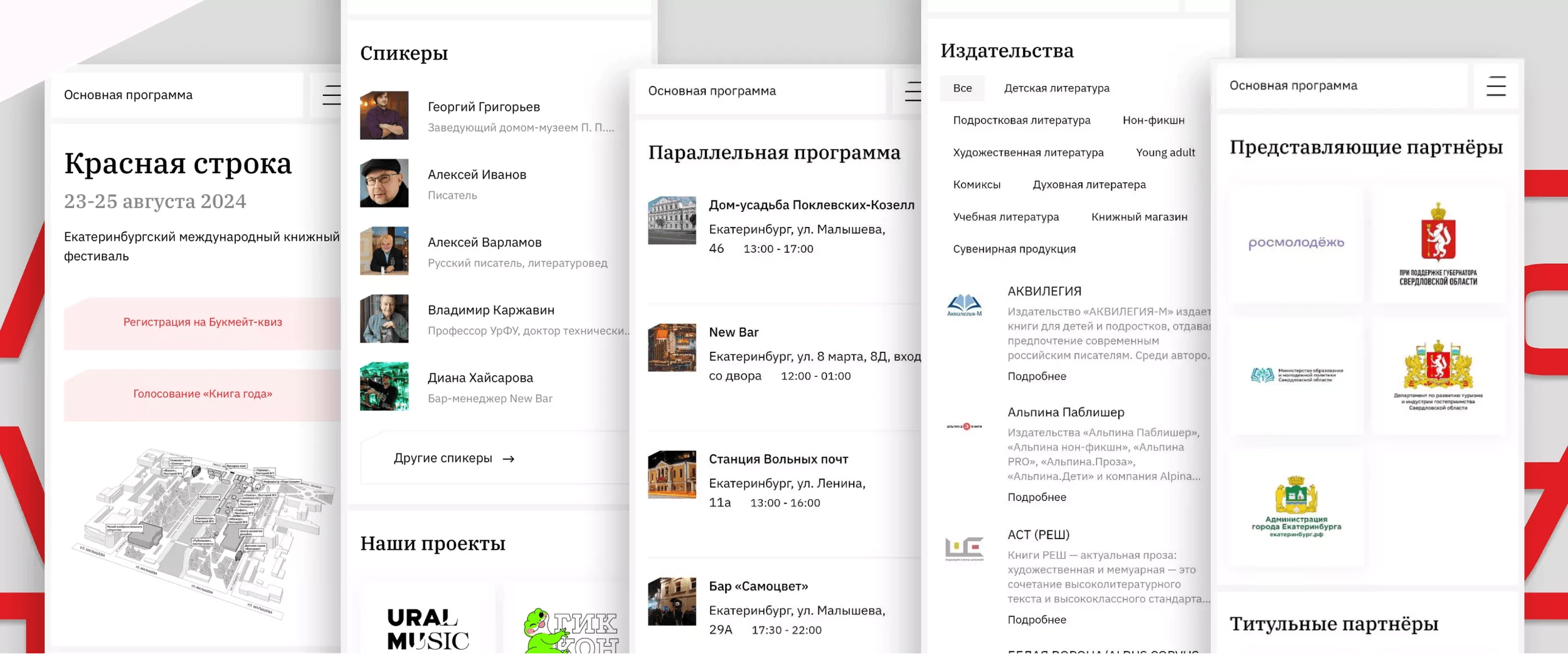 Проектируя сайт для фестиваля «Красная строка», мы понимали: это не просто ивент с афишей, а культурное высказывание. Поэтому задача дизайна заключалась не только в том, чтобы оформить интерфейс, но в том, чтобы найти форму, которая поддерживает и усиливает содержание.