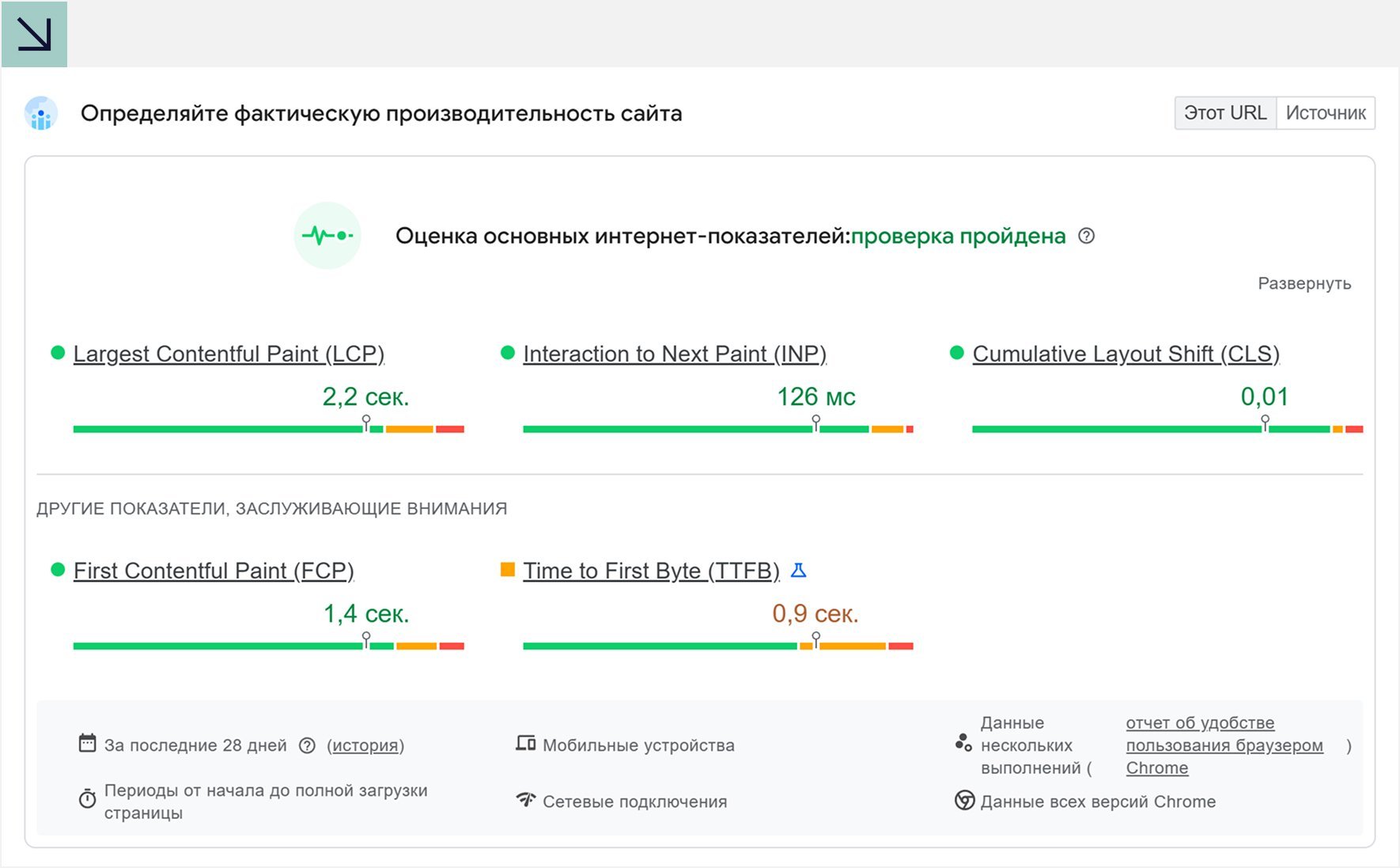 Стабильность макета (CLS). Отсутствие визуальных «прыжков» элементов при загрузке критично для сохранения доверия пользователя.