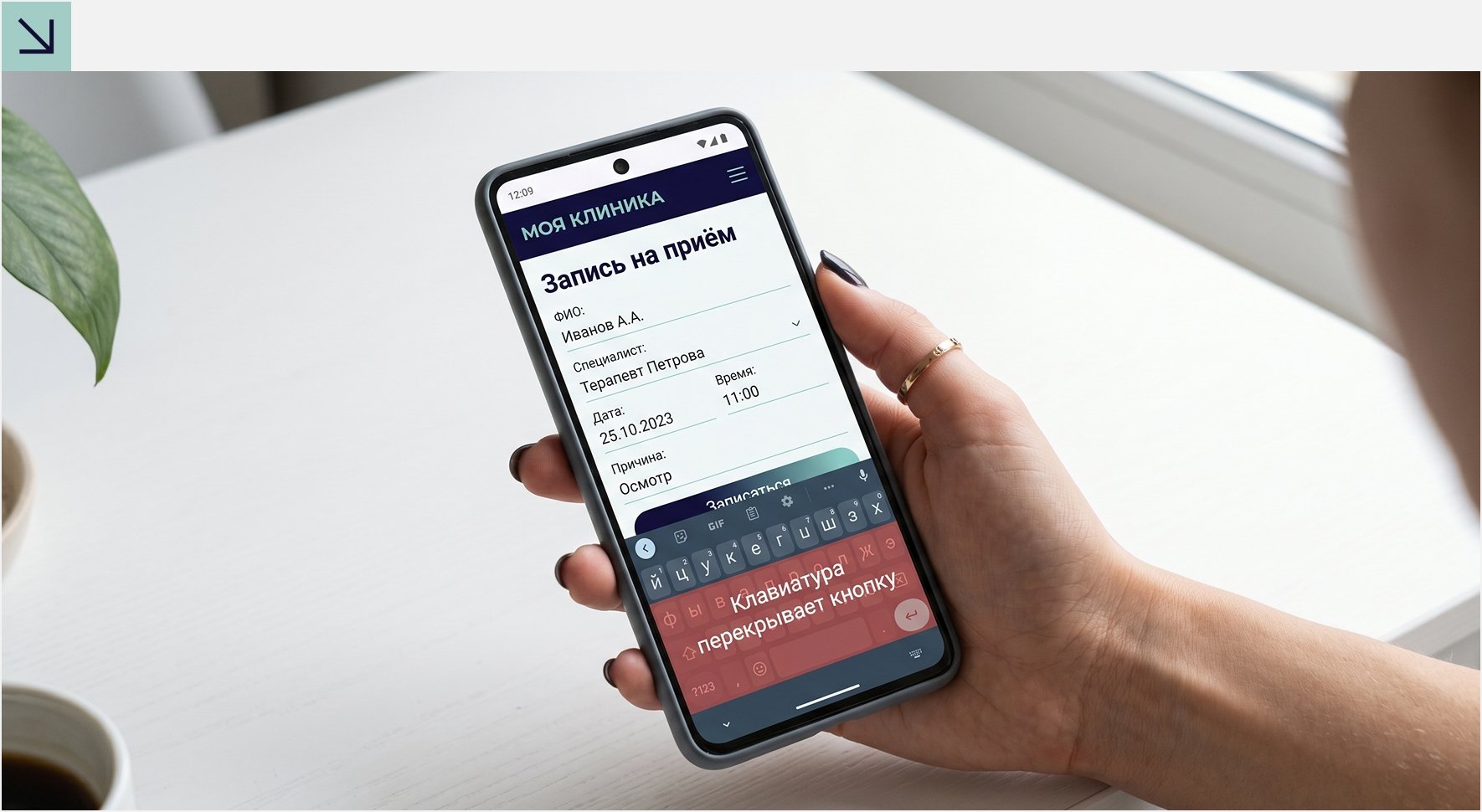 Конфликты экранного пространства, возникающие при активации виртуальной клавиатуры, которая зачастую перекрывает поля ввода или кнопку отправки формы, вынуждая пользователя совершать лишние манипуляции для завершения записи.