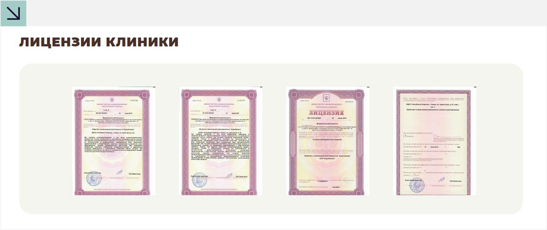 Лицензирование, предполагающее размещение разрешительной документации непосредственно на страницах соответствующих услуг, а не только в общем разделе «Документы».