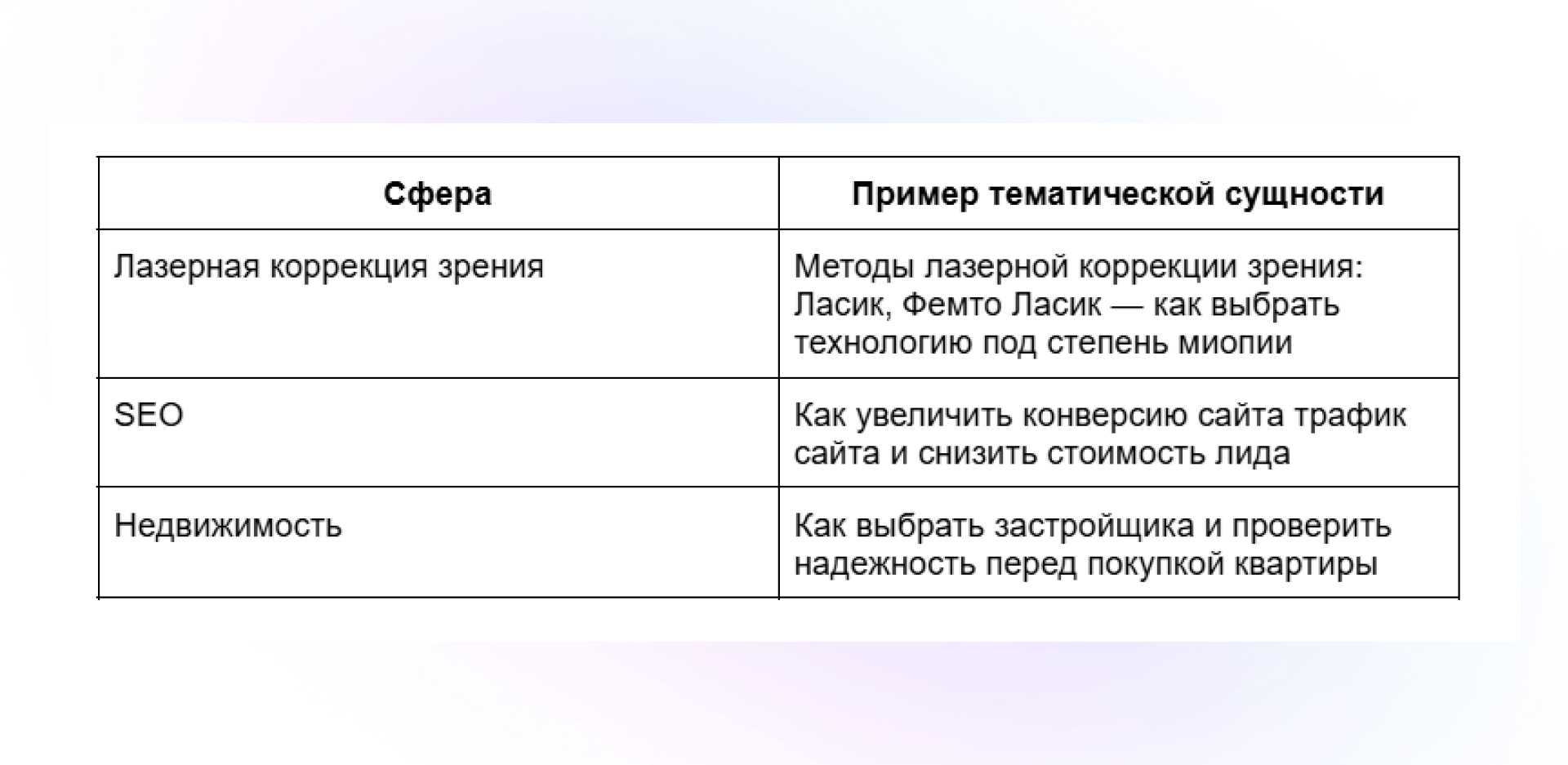 Цель: Понять внутреннее устройство ниши, определить основные тематические домены, выявить связи между темами, найти контентные возможности и спроектировать архитектуру для построения топического авторитета.