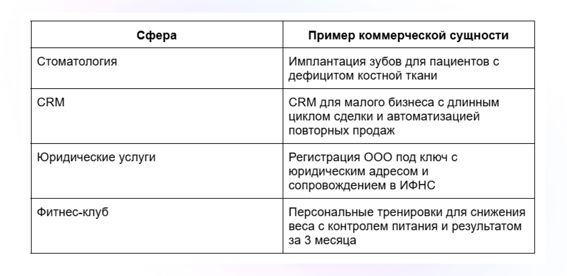 2. Коммерческие сущности (продукт, услуга).