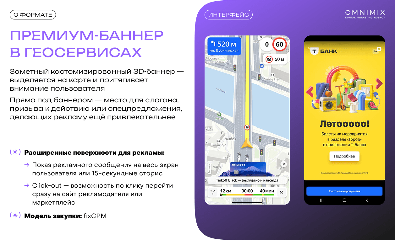 Этот формат позволяет дублировать наружную рекламу в цифровом пространстве, создавая синергию офлайн- и онлайн-коммуникаций.