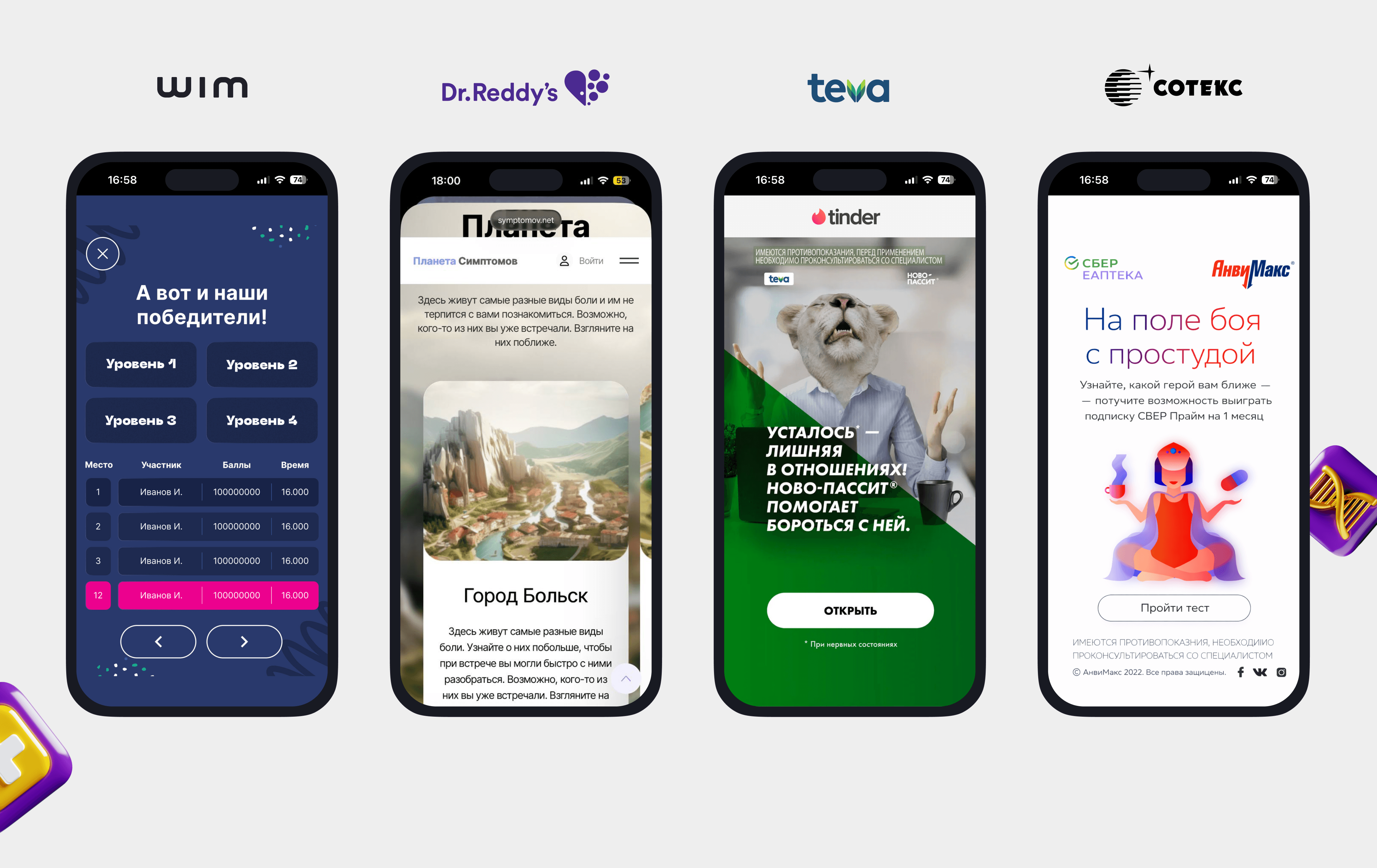 1. WIM.Agency, кейс «Геймификация для врачей за 14 дней», 2024 — https://wim.agency/cases/farmkompaniya-game/
