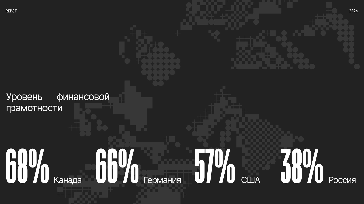 Уровень финансовой грамотности в России (38%) значительно ниже развитых стран: США (57%), Германия (66%), Канада (68%)