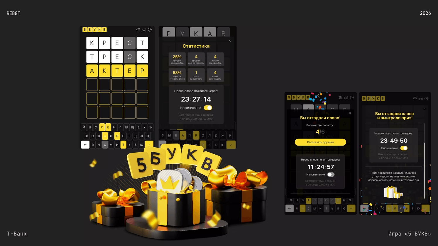 А вот и пример игры в финтехе от Т-Банка: 5 букв