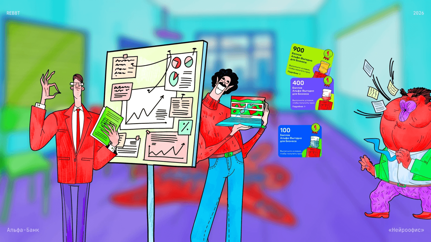Персонажи из нашего проекта "Нейроофис" для Альфа-Банка показывают вам как растут метрики